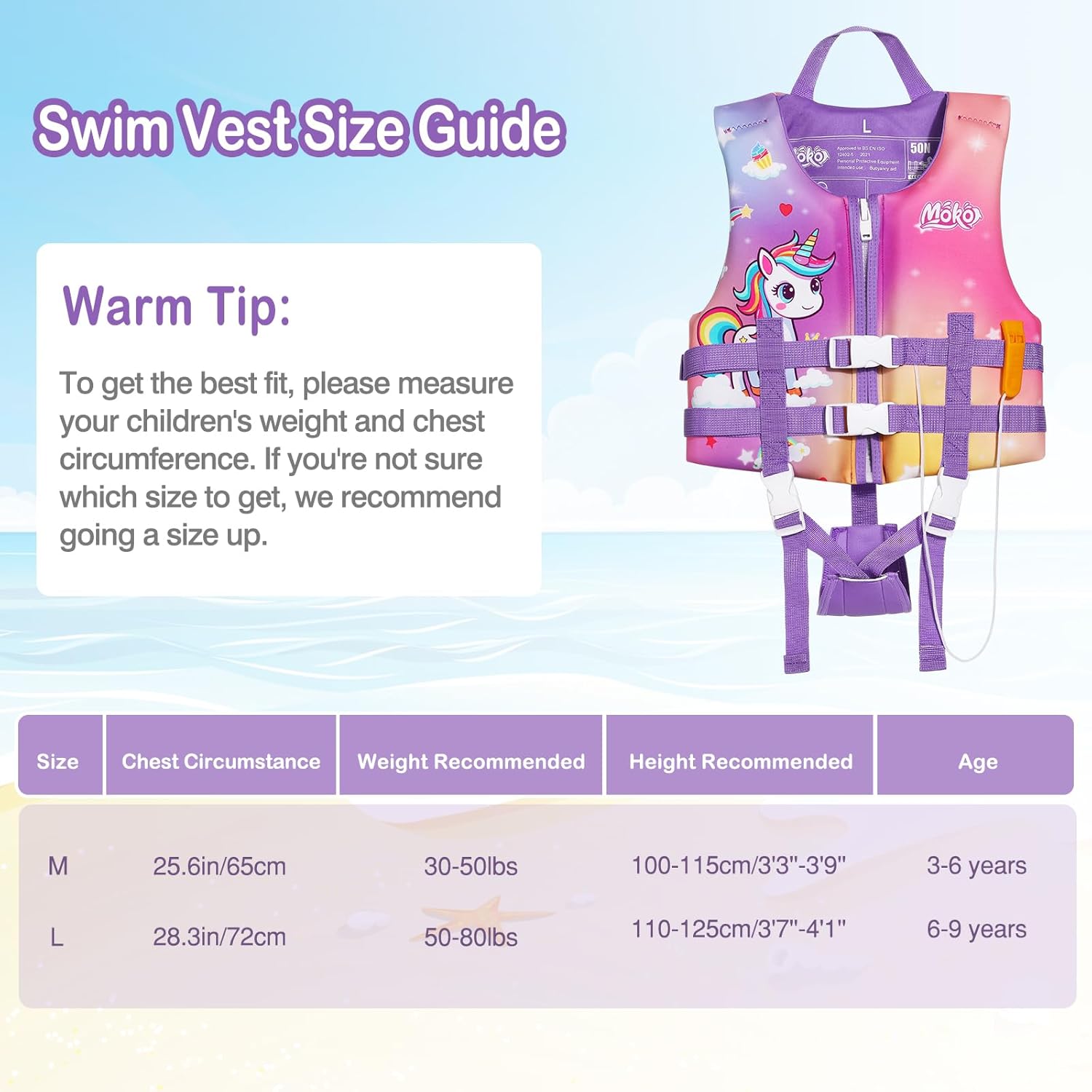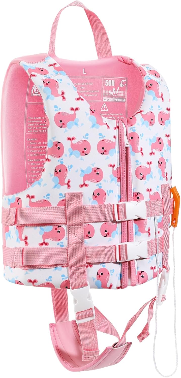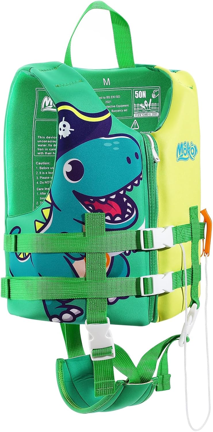 MoKo Swimming Vest for Kids 27-46 lbs, Fell More Comfortable and Safe During Swimming or Boating. FEATURES: Designed with zipper closure for easy on and off by themselves. Double adjustable straps and quick-release buckles ensure more safety. Perfect for boys and girls for swimming, boating and tubing. Children will have much more fun and be safe with this swim vest.Package includes a survival whistle and a whistle pocket, kids can use it when something unexpected occurs to them. (The whistle range can reach up to 10m.) SPECIFICATIONS:Matertial: NylonPadding: 25mm EPE foamHeight Recommended 100-115 cm/3'3""-3'9"", Weight Recommended 13-21 kg/27-46 lbsBox Content:1 x kids swim vest1 x survival whistle1 x whistle pocketNOTE:Children should swim under adult supervision. Please dry the swim vest before put it away. DO NOT expose the it to the sun.