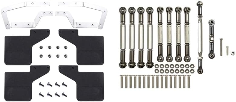 2Set game parts: 1 set x Wheel Fenders & 1 set x rod100% Brand NewMade of High Quality Metal, Stronger And More Durable, Improve The AppearanceSuitable for:For MN D90 D91 D96 D99S MN99S MN90 1/12 RC CarThe stainless steel bracket is stronger, and the rubber mudguard.It is suitable for MN D90, the girder is fixed without opening.Material:rubber+stainless steel+metalColor:black+silver+Titanium ColoPackage includes:2 x Front Wheel Fenders2 x Rear Wheel Fenders1 x Mounting Accessories Set8 x Chassis rod2 x Steering rod1 x screw setOnly the above package content, other products are not included.Note: Light shooting and different displays may cause the color of the item in the picture a little different from the real thing. The measurement allowed error is +/- 1-3cm.Metal Pull Rod Steering Link Rod Set Parts With Rubber Front And Rear Fenders Mud Flaps Accessories 2Set game parts: 1 set x Wheel Fenders & 1 set x rod100% Brand NewMade of High Quality Metal, Stronger And More Durable, Improve The AppearanceSuitable for:For MN D90 D91 D96 D99S MN99S MN90 1/12 RC CarThe stainless steel bracket is stronger, and the rubber mudguard.It is suitable for MN D90, the girder is fixed without opening.Material:rubber+stainless steel+metalColor:black+silver+Titanium ColoPackage includes:2 x Front Wheel Fenders2 x Rear Wheel Fenders1 x Mounting Accessories Set8 x Chassis rod2 x Steering rod1 x screw setOnly the above package content, other products are not included.Note: Light shooting and different displays may cause the color of the item in the picture a little different from the real thing. The measurement allowed error is +/- 1-3cm.Item specifics:Material: MetalOrigin: Mainland ChinaRecommend age: 12+yCertification: NONE
