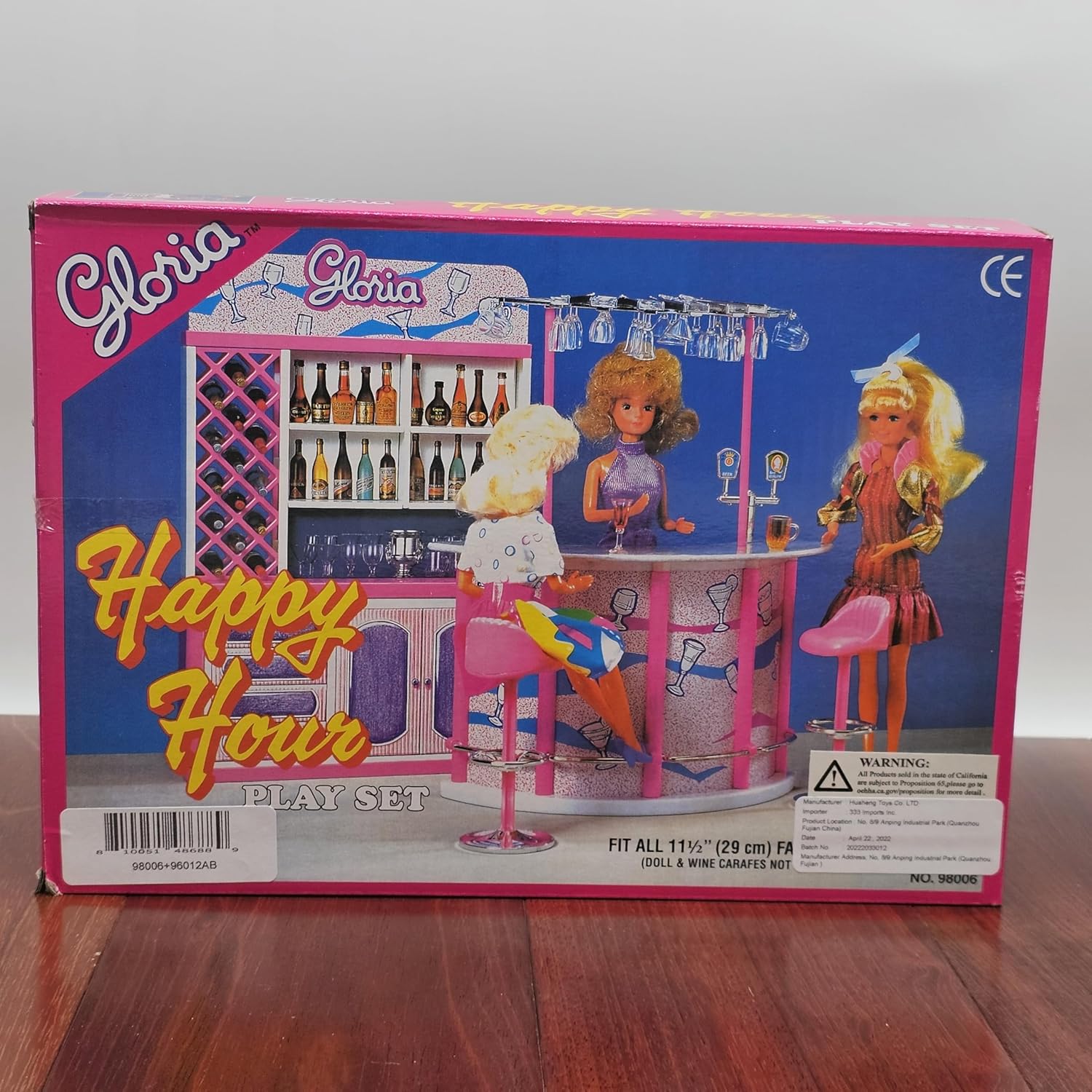 The play set is perfact to display with barbie size dollhouse furniture. The product include Bar stand, wine hutch, 2 wine racks. The product need to assemble with an adult superviction.