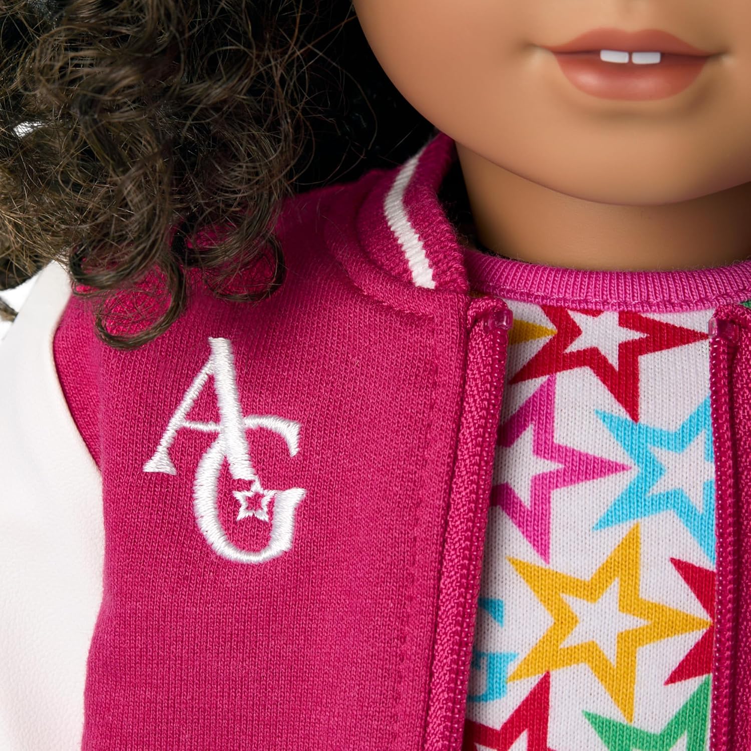 Her doll can match the AG squad with this stylish look! This outfit includes a varsity jacket for 18-inch dolls that matches the AG Star Squad Jackets for Girls and Adults.