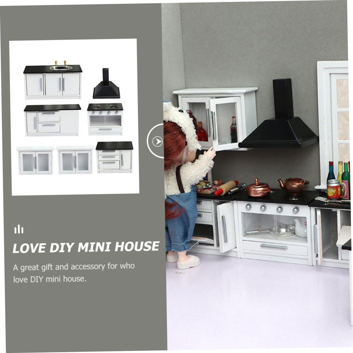 Package Include 1 x Mimi Cooking Bench 1 x Mimi Mimi Long Plane Table 1 x Mimi Short Plane Table 2 x Mini Hanging Cabinets 1 Features - Kitchen Size: About 7x4.5x6.2cm/2.76x1.77x2.44in Mini House Kitchen - Water Channel Size: About 12.4x5x6.1cm/4.88x1.97x2.4in Mini House Furniture Decor - Long Plane Table Size: About 12.7x5x6.1cm/5x1.97x2.4in Mini Furniture Ornament - Color: Black Doll House Kitchen - Material: Mini House Ornament - Cooking Bench Size: About 8.9x3x6.3cm/3.5x1.18x2.48in Doll House Furnishings - Hanging Cabinet Size: About 8.9x3x6.3cm/3.5x1.18x2.48in Mini Scene Furniture - Short Plane Table Size: About 8.4x5x6.1cm/3.3x1.97x2.4in Mini Kitchenette - It can be used as a photography prop, mini house decoration accessory Mini House Furniture. - Great for adding life atmosphere for your mini house, chic and lovely Mini Furniture. - An important mini house accessory and makes your mini house more attractive and Small Furniture Prop. - Fine craftsmanship and details ensure its practicality and popularity Miniature Kitchen Model. - This mini house decorative furniture is made of great resin material which is Miniature Gas Stove.Goods InformationMini Wooden Furniture These products are mini house furniture model decor for decorating or playing, suitable for house decor and handmade items' decor.Mini Kitchen Accessory made of material, they are mini house collection decorations