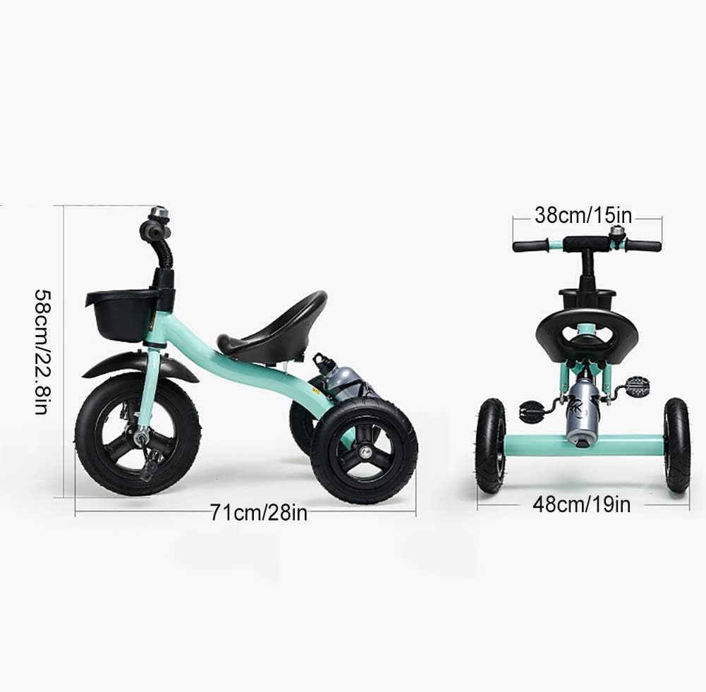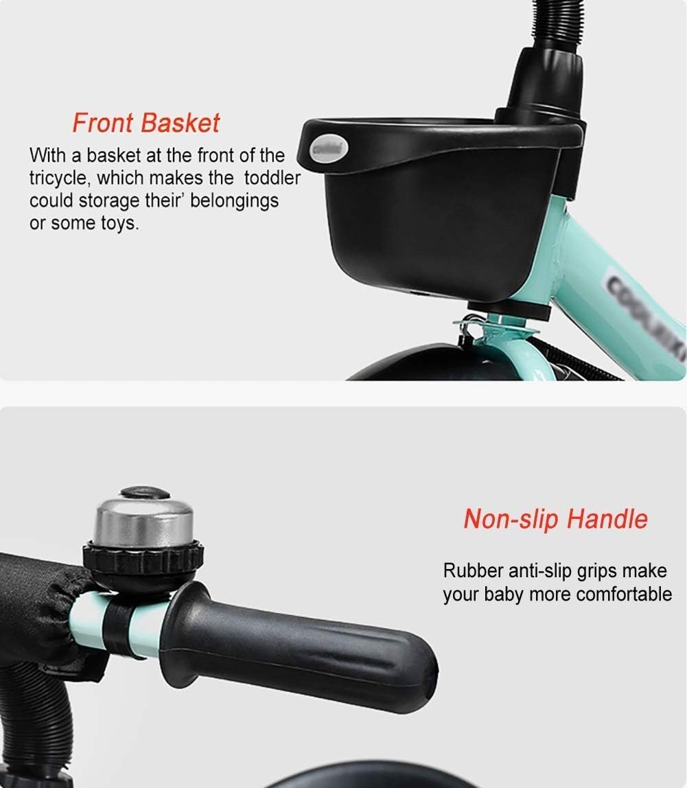 A sturdy kids trike made of metal with bars for pushing and steering. The tricycle has several features. The handlebar can be removed. The soft handle and comfortable seat ensure a pleasant driving experience. The safety belt attached to the seat ensures a safe ride. Boost your child's confidence by giving them a more fun and effective way to learn to ride a tricycle! Learning to ride a tricycle helps develop a child's positional awareness and improve their adaptive skills. Feel free to buy one! Your little one will love it! Features: Perfect for kids ages 2 to 6. Lightweight design makes it easy for your child to move and maneuver. . Non-slip rubber handles make it easy for kids to hold. No inflation - titanium free wheels, perfect for multiple grounds. With a basket on the front of the tricycle, your toddler can store their belongings and toys. Contents:1 Children's TricycleNote: 1. Due to manual measurement, the product size may appear a physical error of 2. 3cm 2. Due to display and lighting reasons, there may be some differences between the picture and the product, please refer to the actual product.