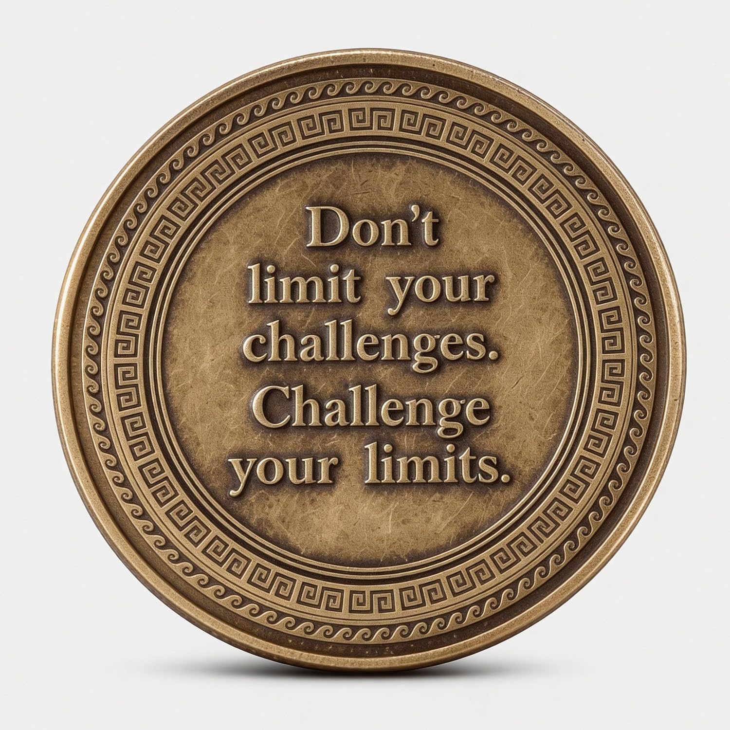 The Warrior Mindset Coin is a motivational pocket token crafted to inspire courage, discipline, and strength. Featuring the empowering motto “Be a Warrior, Not a Worrier - Dare to Be More”, and “Don’t limit your challenges. Challenge your limits” on the reverse, this coin reminds you to face obstacles with determination. Made from durable brass alloy, this inspirational EDC coin fits easily into your pocket, wallet, or everyday carry kit. It serves as a daily motivator to cultivate resilience and push beyond limitations. A meaningful gift for men and women, the Warrior Mindset Coin makes an ideal encouragement present for athletes, leaders, students, entrepreneurs or anyone striving to conquer their goals with strength and focus.