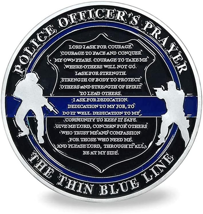 ST Michael patron saint of law enforcement; Reverse with police officer's prayer and the thin blue line;