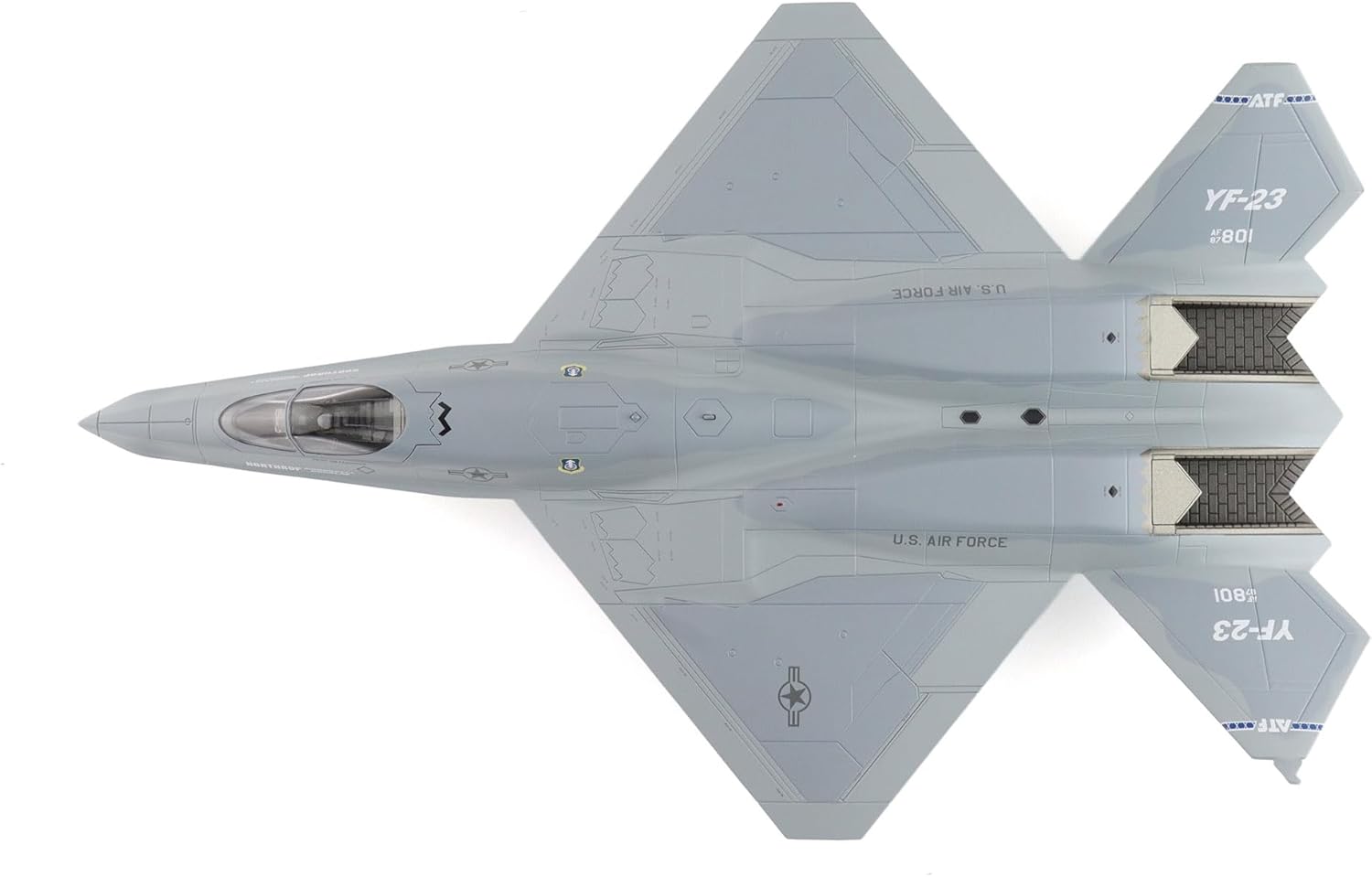 The Hobby Master 1:72 scale YF-23 "Gray Ghost" PAV-2 (87-0801) model replicates one of America’s most advanced stealth aircraft prototypes. With internal missile bays, accurate markings, and stealthy lines, this display model measures 11 inches long with a 7.75-inch wingspan. Built for collectors aged 14+, it captures the legacy of a rare USAF jet.