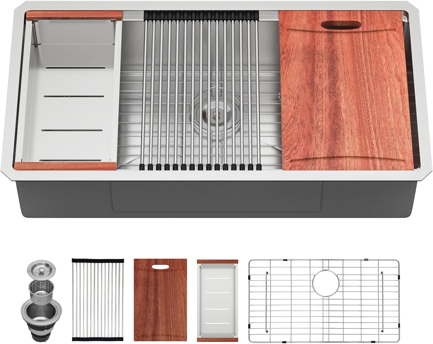 | Included Components | colander, cutting board, drain assembly, roll up rack, stainless steel dish grid |