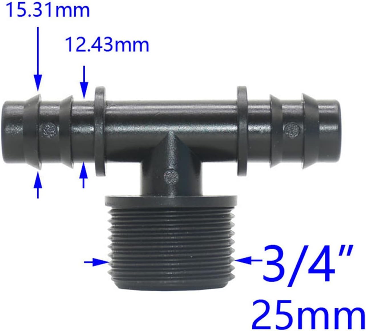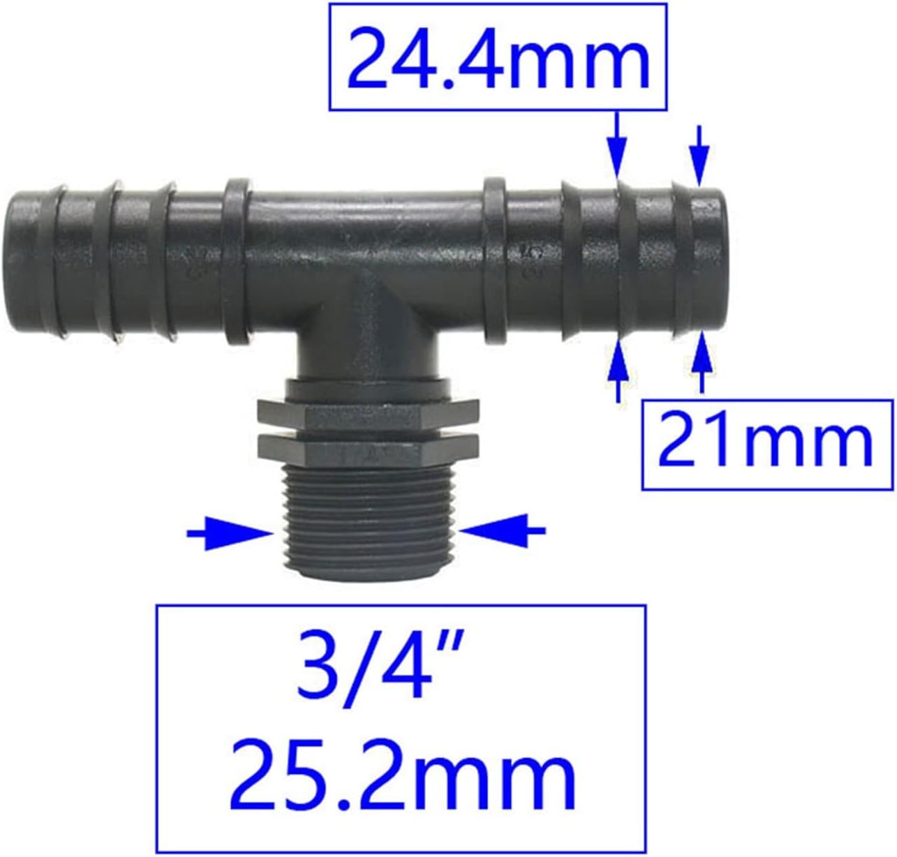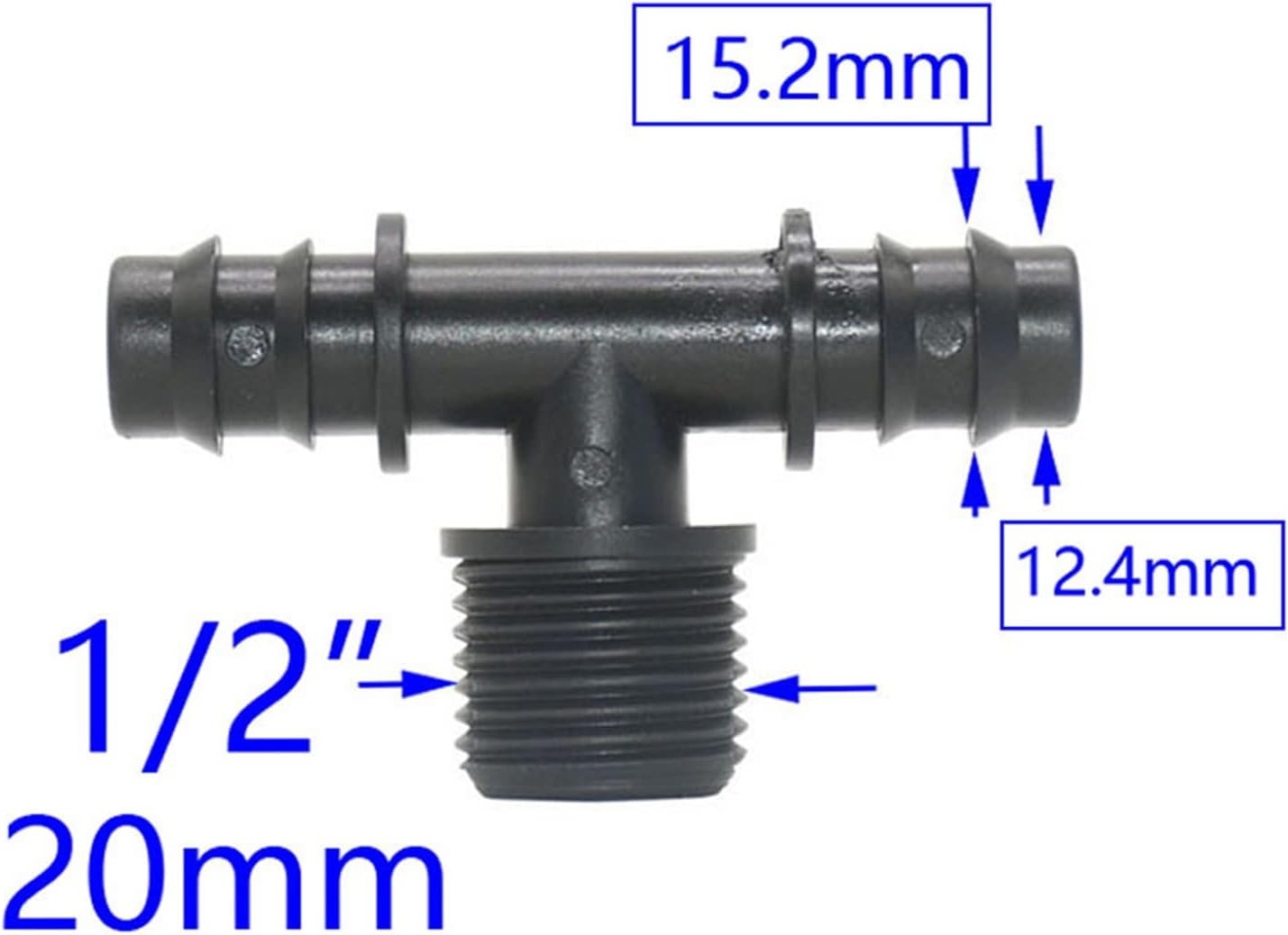 Downspouts1/2 3/4 Male Thread To 8/12/16/20mm Hose Barbed Tee Connectors 2-Way Splitter Agriculture Irrigation Pe Tube Adapter 5PcsConnection thread: 1/2 3/4 inch1/2 thread: about 20mm in diameter3/4 thread: about 25mm in diameterInner diameter of connecting hose: 8MM/12MM/16MM/20MM.Suitable for drip irrigation system and sprinkler system.If you want to water a lot of plants or flowers,Then this is a good choice.