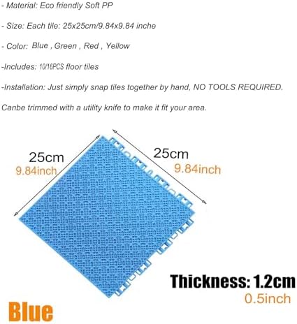 Transform your environment with our versatile interlocking floor tiles, expertly designed to enhance safety and comfort for everyone, including pregnant women, the elderly, and children. The anti-skid surface significantly decreases the risk of slips, offering peace of mind in high-traffic areas. With their anti-fatigue properties, these tiles provide a soothing experience that gently massages tired feet, making them ideal for kitchens, playrooms, or any area where you may stand for extended periods. **Effortless Installation** Create your ideal floor layout with our easy-to-assemble snap-together tiles. No tools or glue are needed, allowing for quick assembly or disassembly for storage or transport. Whether you require a temporary flooring solution for an event or a permanent upgrade for your home, our tiles are adaptable to your needs. **Hassle-Free Cleaning** Maintaining cleanliness is simple with our self-draining design. Just hose down the tiles to remove dirt and debris. For deeper cleaning, a scrub brush and soap work effectively; the tiles can be easily removed and reinstalled as necessary, ensuring your floors remain fresh and hygienic. **Product Specifications:** - Material: PP - Size (Each tile): 25x25 cm / 9.84x9.84 inches - Shape: Square - Lock-in system for secure placement - Available Colors: Blue, Light Blue, Gray, Green, Red, Yellow - Package Includes: 10 or 16 pieces of Splicing Soft Mats Elevate your flooring solution with our stylish and functional tiles, perfect for any setting where safety and comfort are paramount. Discover the difference today!