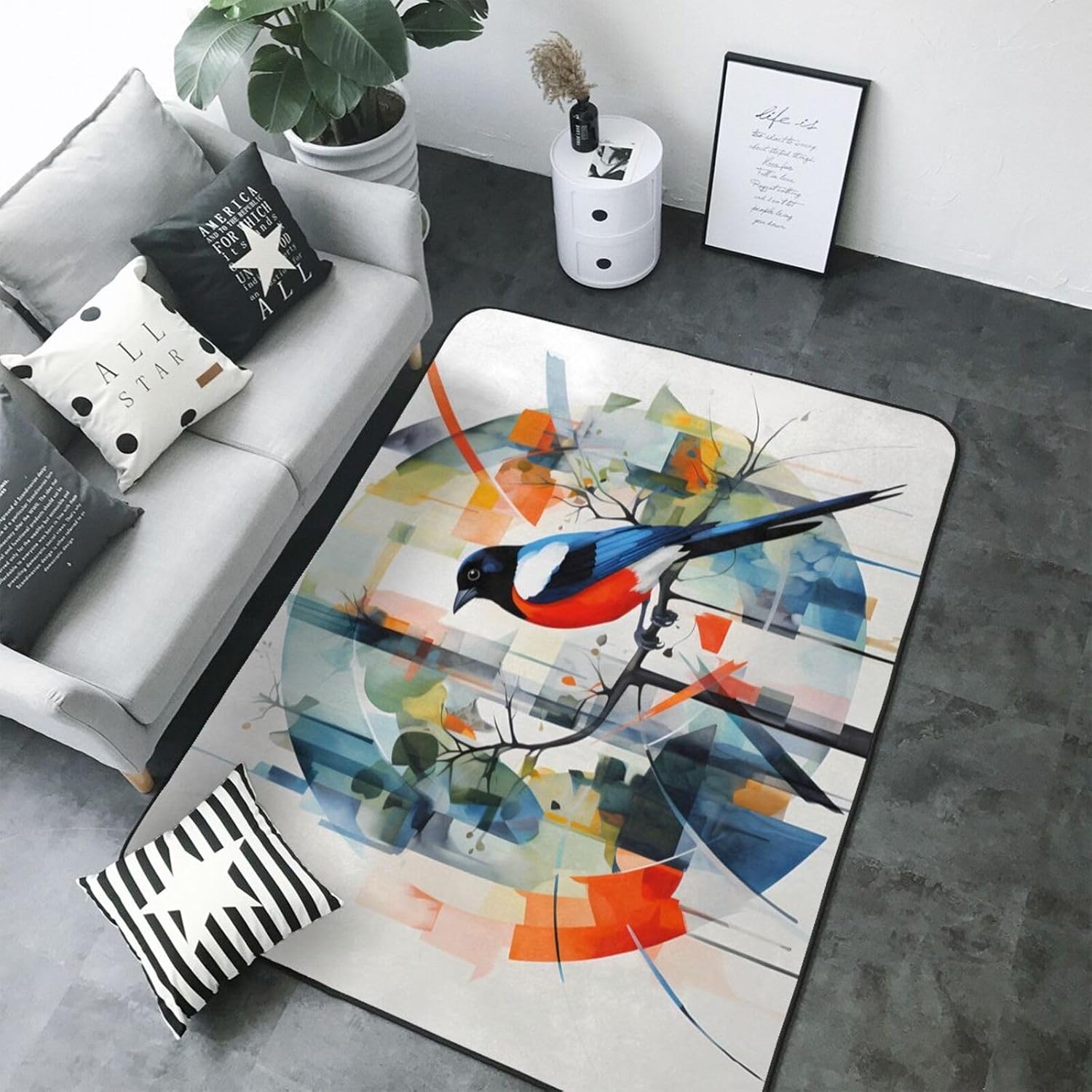 This Cute Magpie printed decorative carpet is made of polyester flannel, which is delicate and soft to the touch, with tight and regular pile. It will not pill or fade after long-term use, and will always look like new. The middle layer uses high-density memory foam, which can automatically adjust according to the foot shape and pressure, providing precise massage for tired feet and relieving fatigue. The bottom is designed with non-slip plastic bottom non-woven fabric, which can firmly grip the ground even when it encounters water or on smooth surfaces, ensuring the safety of the elderly and children. It is easy to clean daily, can be machine washed or hand washed, and is wear-resistant and does not shed. Exquisite stitching technology and high-quality tailoring, with smooth edges, are suitable for a variety of scenes such as bathrooms, living rooms, and bedrooms. Non-slip, comfortable, and durable, adding a touch of intimacy and elegance to your life.