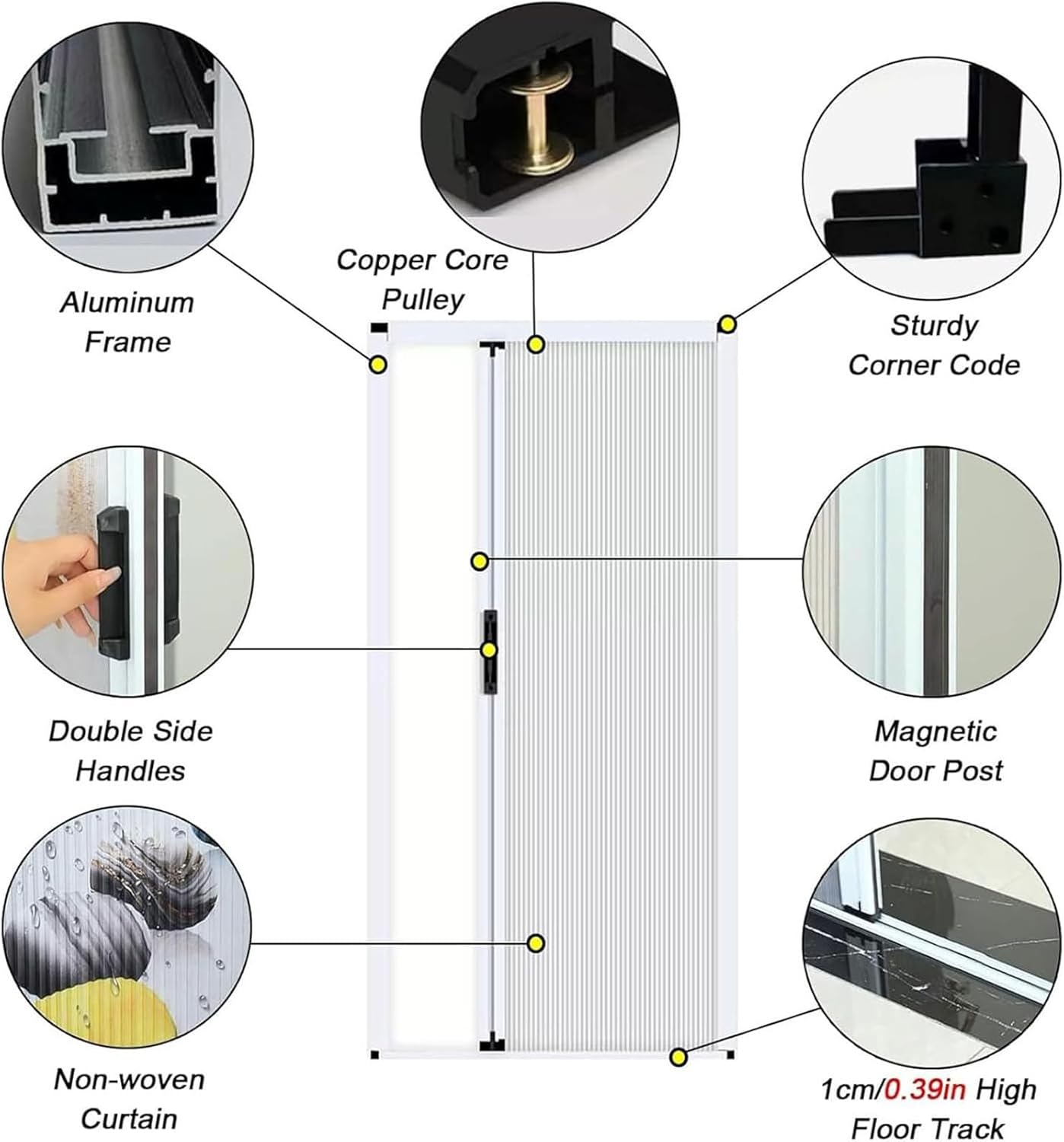 Metal Frame Indoors Security Patio Door:Are you tired of common household issues? - Is kitchen smoke making your space uncomfortable? - Struggling with outdoor noise that disrupts your sleep? - Finding it too cold in winter and too hot in summer indoors? - Dealing with lingering odors in your bathroom? Transform your living experience with our Folding Sliding Door! This innovative solution helps you tackle these challenges while enhancing your home’s comfort. **Product Specifications:** - **Material:** High-quality Aluminum Alloy + Non-woven Fabric - **Length & Height:** Customizable to fit your needs - **Features:** Waterproof, Thermal Insulation, and Easy to Clean **Key Features:** - **Privacy Assurance:** The door effectively blocks views and is lockable for added security. - **Effortless Operation:** Enjoy smooth opening and closing without sticking or jamming. - **Built to Last:** Durable aluminum panels are resistant to warping, cracking, and fading, ensuring long-term use. - **Space-Saving Design:** Replace traditional doors with this folding option to maximize your living area. - **Aesthetic Appeal:** The contemporary design enhances the overall look of any room. - **Multi-functional Benefits:** Reduces noise, controls indoor temperature, and helps prevent the entry of fumes, light, and pets. **What’s Included?** 1 x Pull Down Honeycomb Folding Door **Important Notes:** 1. Manual measurements may result in a 1-3cm variance; please understand. 2. A slight odor is normal upon unpacking and will dissipate within two to three days. Upgrade your living space today with our Folding Sliding Door and enjoy a more comfortable, peaceful home environment!