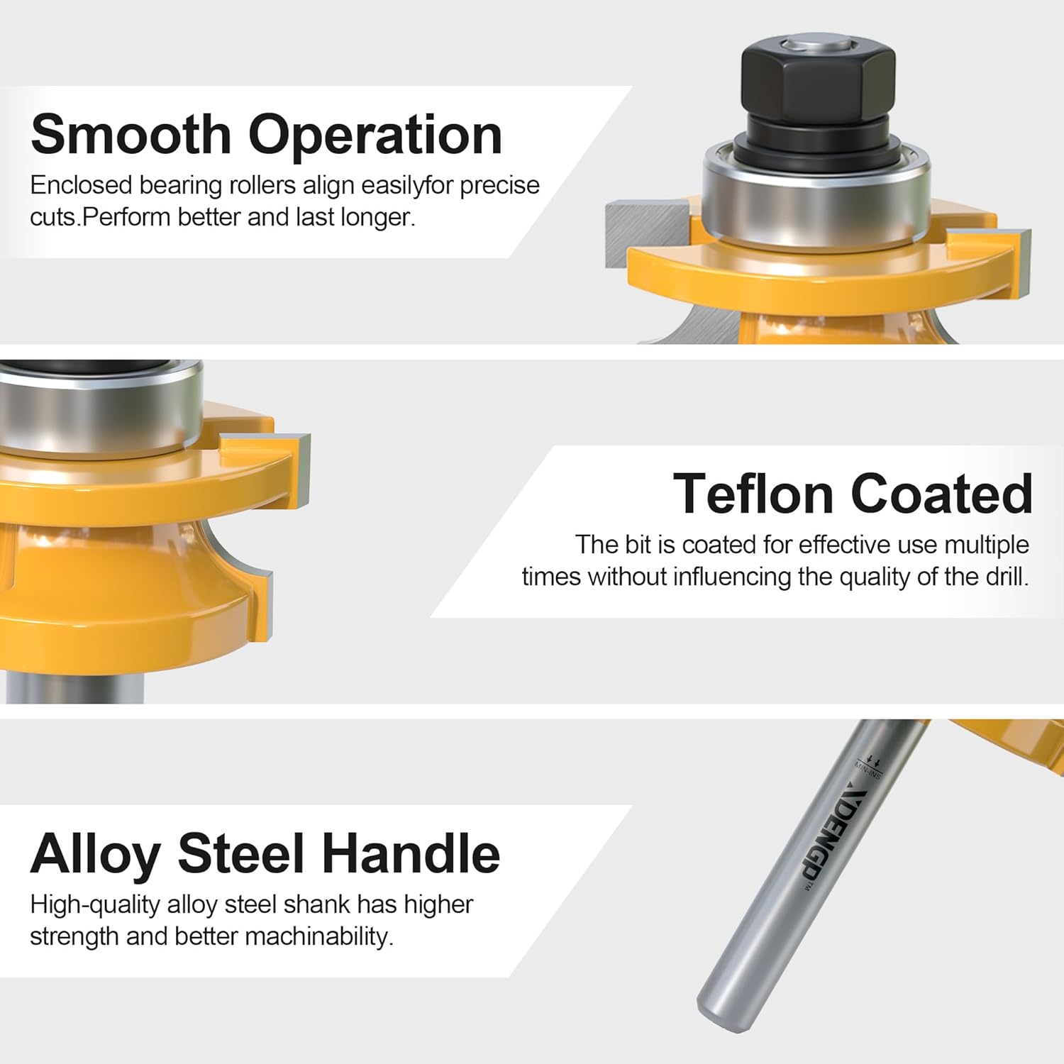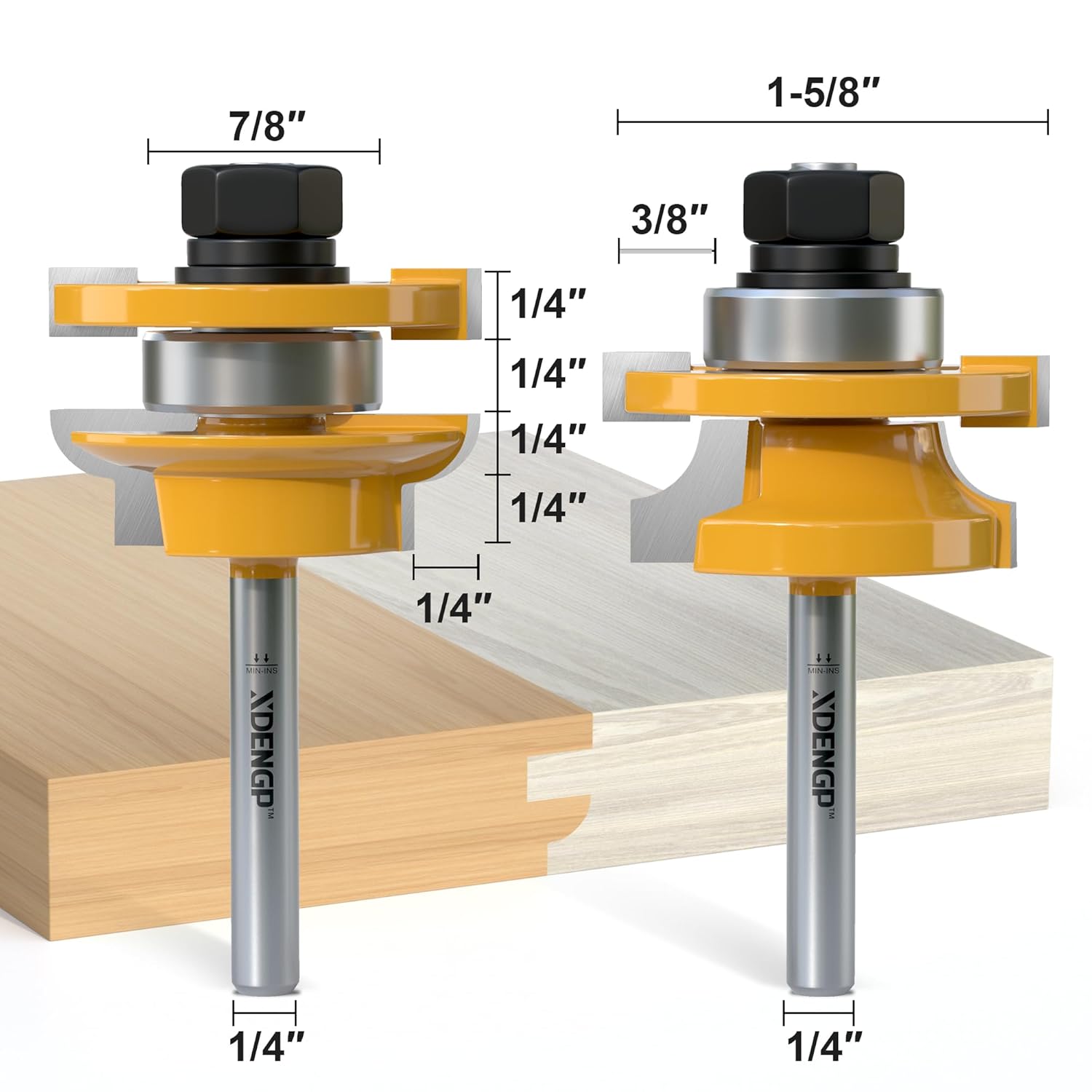| Included Components | XDENGP 2PCS Round Over Style Rail and Stile Router Bits Set 1/4 Inch Shank |