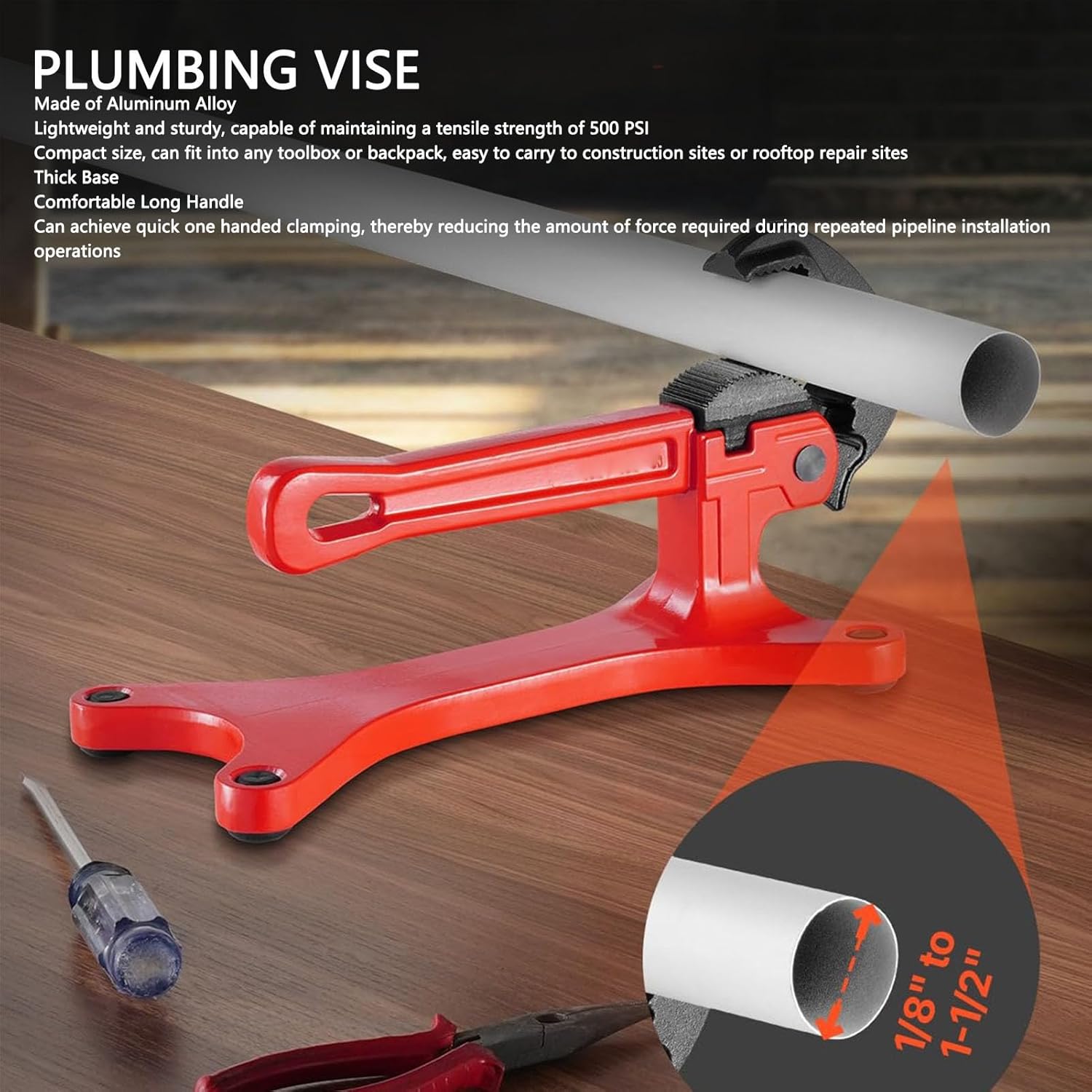 Spec: Item Type: Plumbing Vise Material: Aluminum Alloy Clamping Range: 1/8in to 1-1/2in Application: Suitable for pipe, mechanical maintenance, and home repair Size: Approx. / 10.6x4.5in Package List: 1 x Plumbing Vise How To Use: Remove the product and use directly.