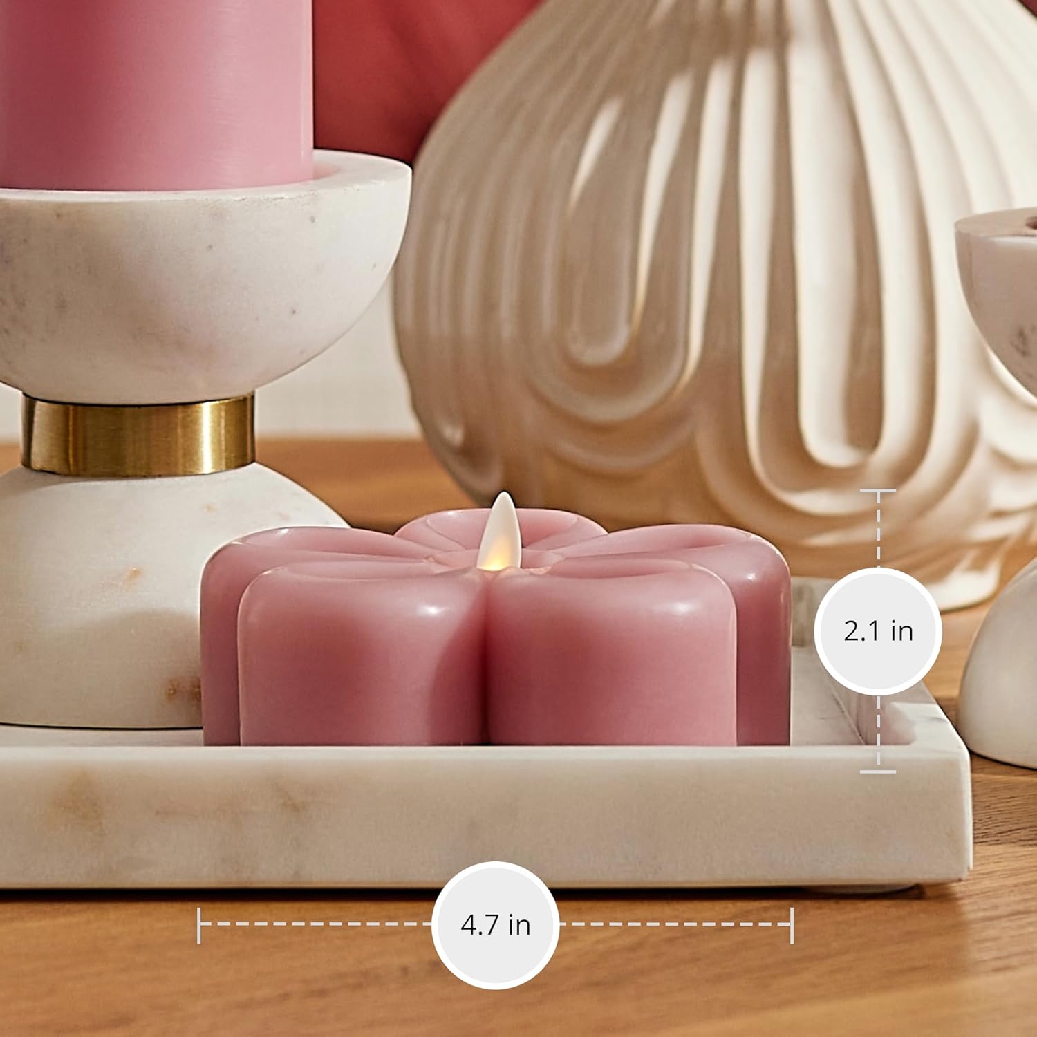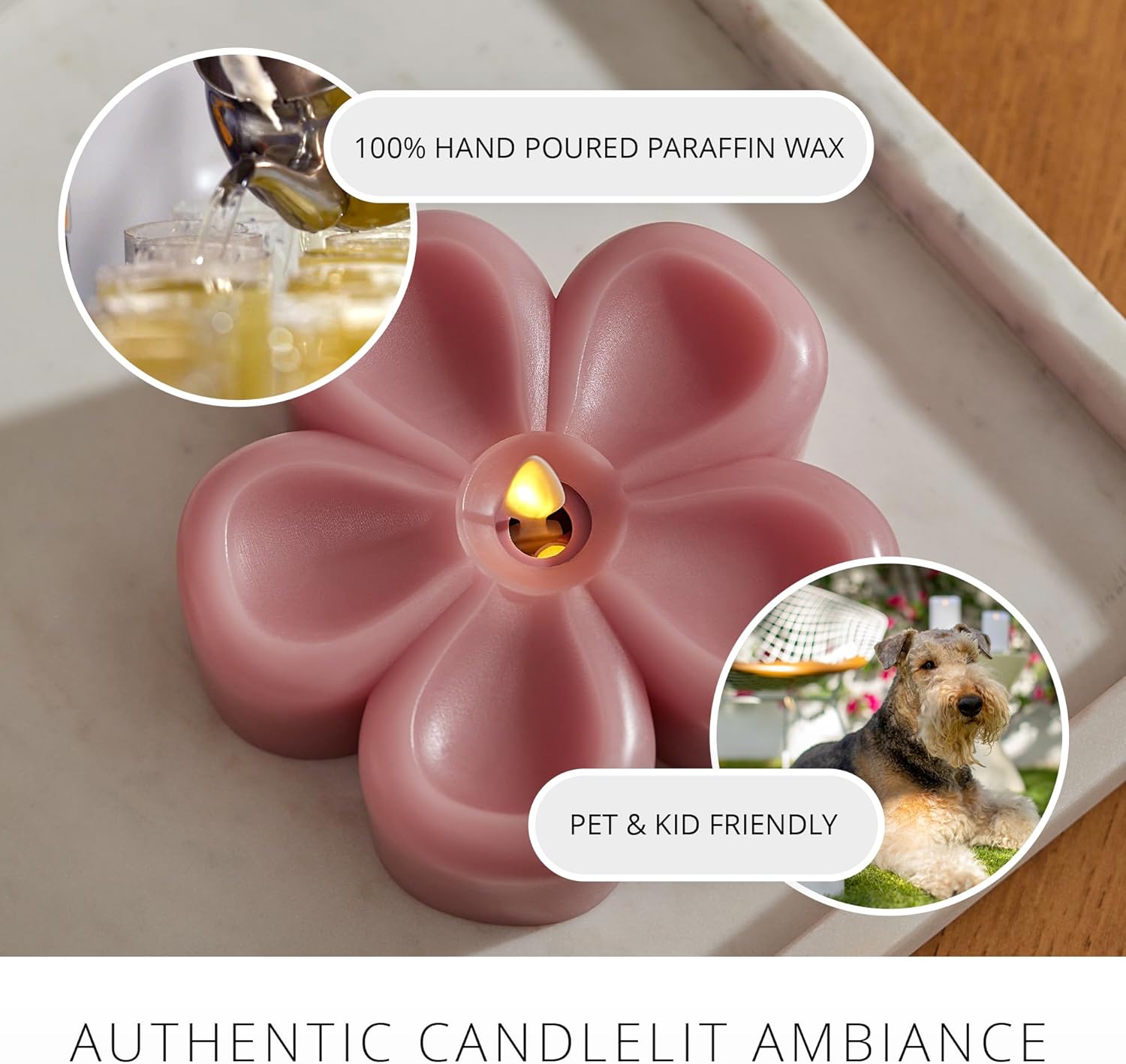 The Blooming Mauve Tealight Flower is crafted to add a playful touch of springtime bliss into your home décor lighting. Poured with premium wax in a dusty purple color with hints of blush pink, this robust flameless candle tealight has a smooth finish and is shaped with five petals surrounding the flicker and glow of genuine moving-flame technology. Safe to use around children and pets, the warm ambient glow of this Luminara Tealight Flower pairs wonderfully with the Blooming Mauve Scallop Pillar or Taper for a perfect touch of light and joy this spring season.