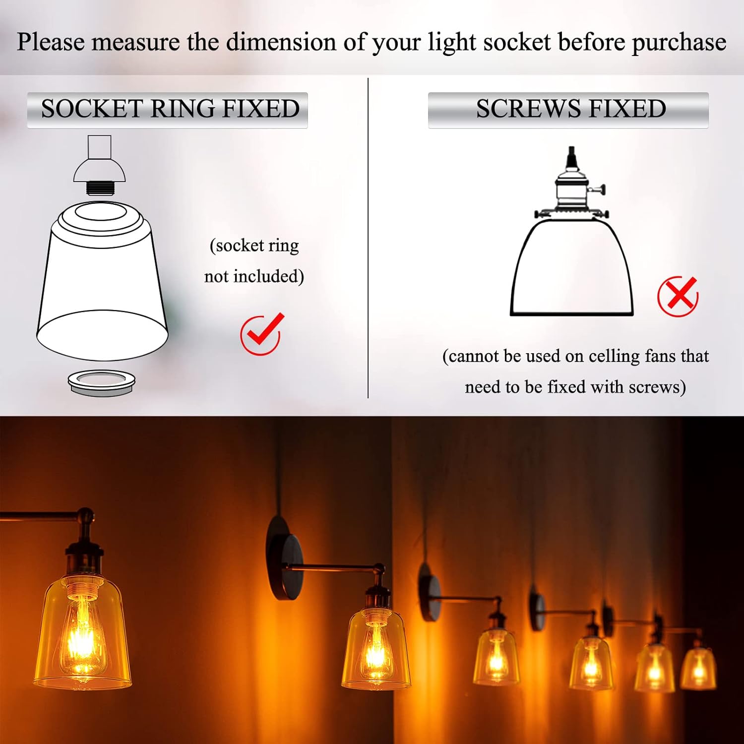 Features: Nice gift choice: You can send this vanity light glass shade as a practical and delicate gift to your family and friends who need a light shade, which can promote your relationships with them. Applicable occasions: You can take this clear glass light shade for home use, and they also fit office, coffee house, bookshop, library, restaurant and so on. Specifications: Material: glass Color: transparent Height: about 5.67 inches/ 144 mm Diameter of the bottom opening: about 5 inches/ 127 mm Diameter of the top opening: about 1.65 inches/ 42 mm Package includes: 6 x Ceiling light covers Notes: Manual measurement, please allow slight errors on size. The color may exist a slight difference due to different screen displays.