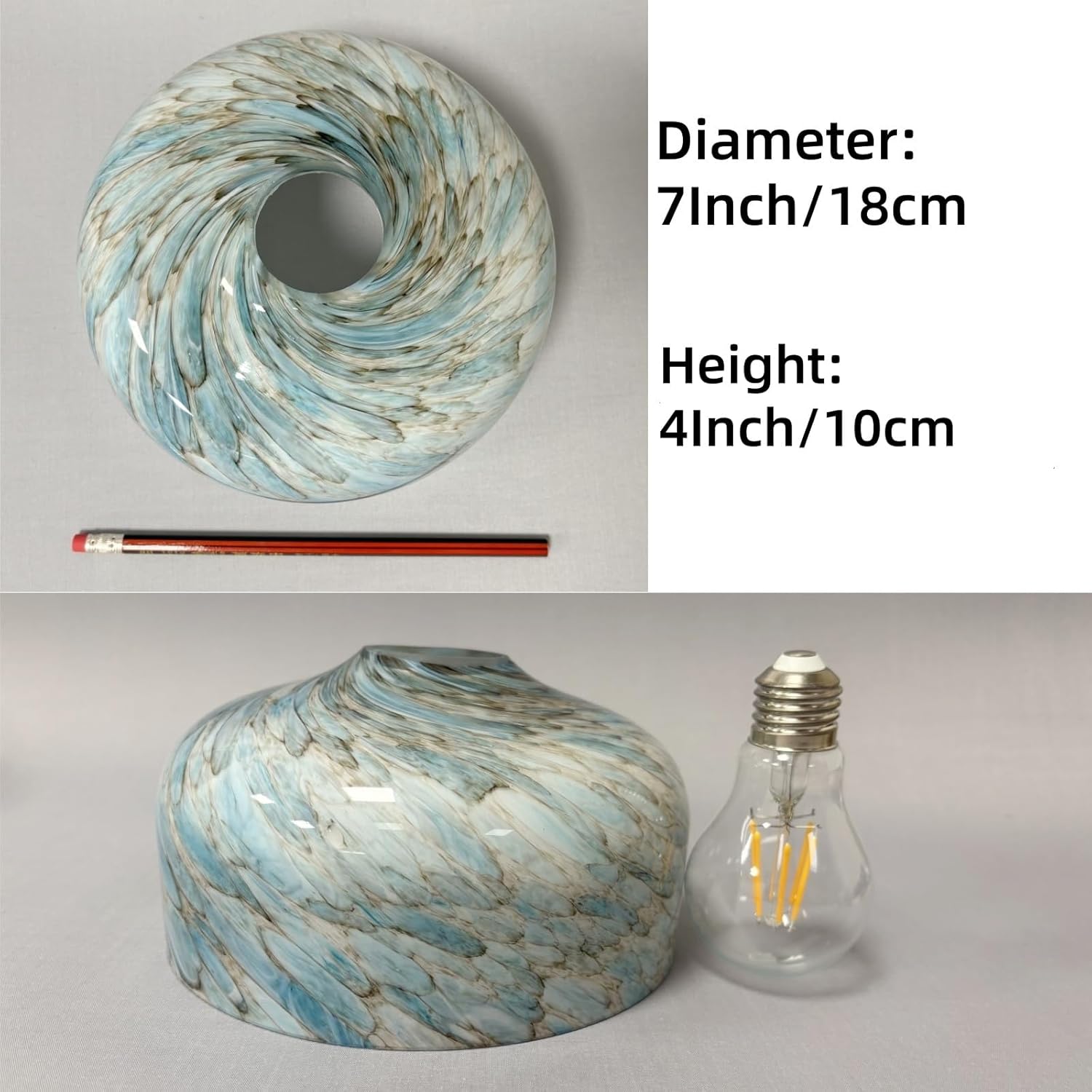 7 Inch Blue Lampshade Replacement Glass Cover, Lighting Fixtures Replacement Lamp Shade, with 1-5/8" Fitter, Handblown Art Glass Lamp Cover for Mini Ceiling Light Pendant Light, 1 Pack