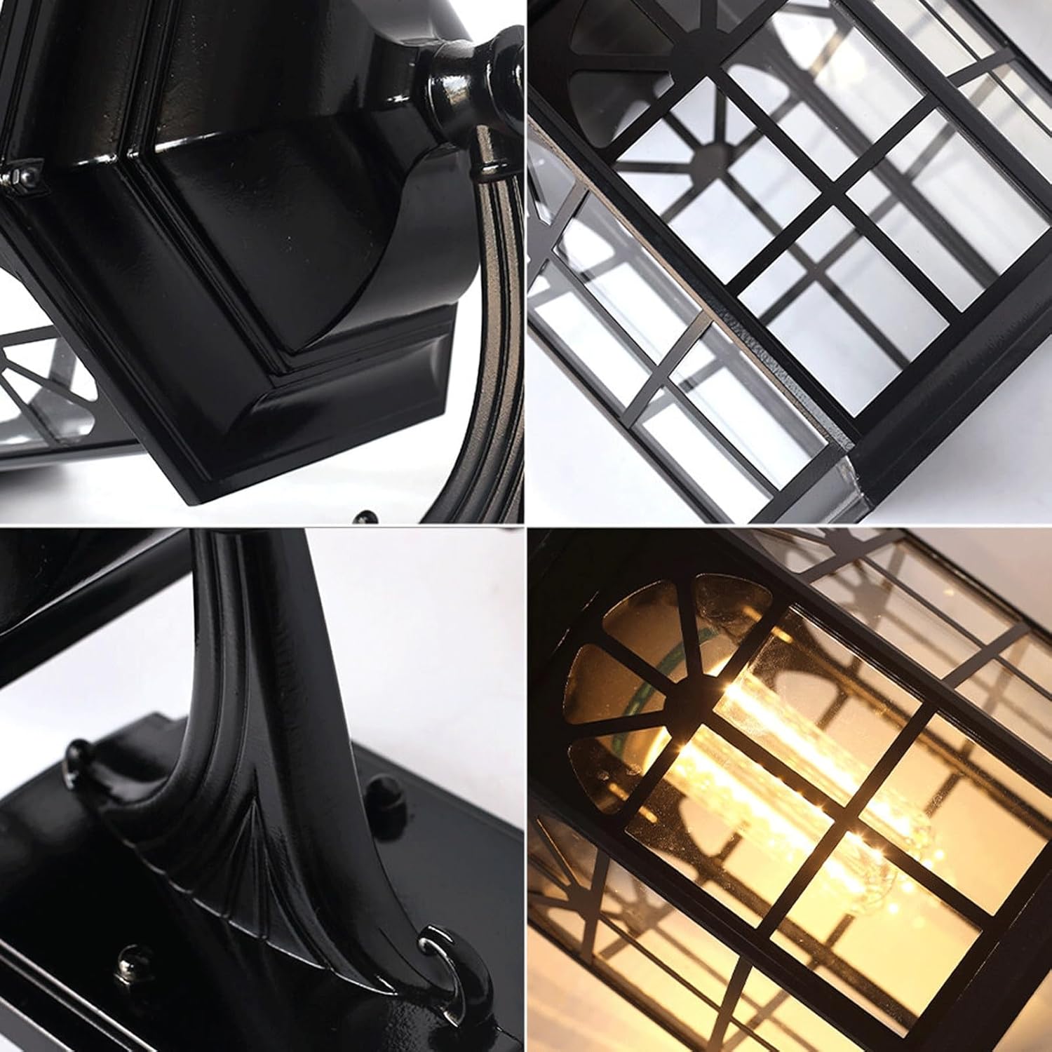 Type: Outdoor Wall Light / Wall Sconce / Exterior LanternStyle: Traditional, Classic, AntiqueMaterial: Die-cast Aluminum, GlassColor: BlackDimensions:Total Height: 15.0" (38cm)Lampshade Width: 9.3" (23.5cm)Wall Backplate Size: 4.7" x 6.9" (12cm x 17.5cm)Distance from Wall: 10.6" (27cm)Socket Type: E26/E27Number of Bulbs: 1Bulb Included: NoSpecial Feature: Waterproof, anti-rust, and thunder-proof design. Features a high-temperature baking paint finish on a durable die-cast aluminum frame for superior weather resistance.Applicable Space: Villa, Courtyard, Garden, Residential Community, Front Door, Porch, Patio, Balcony, Garage, Pathway, Exterior Wall.