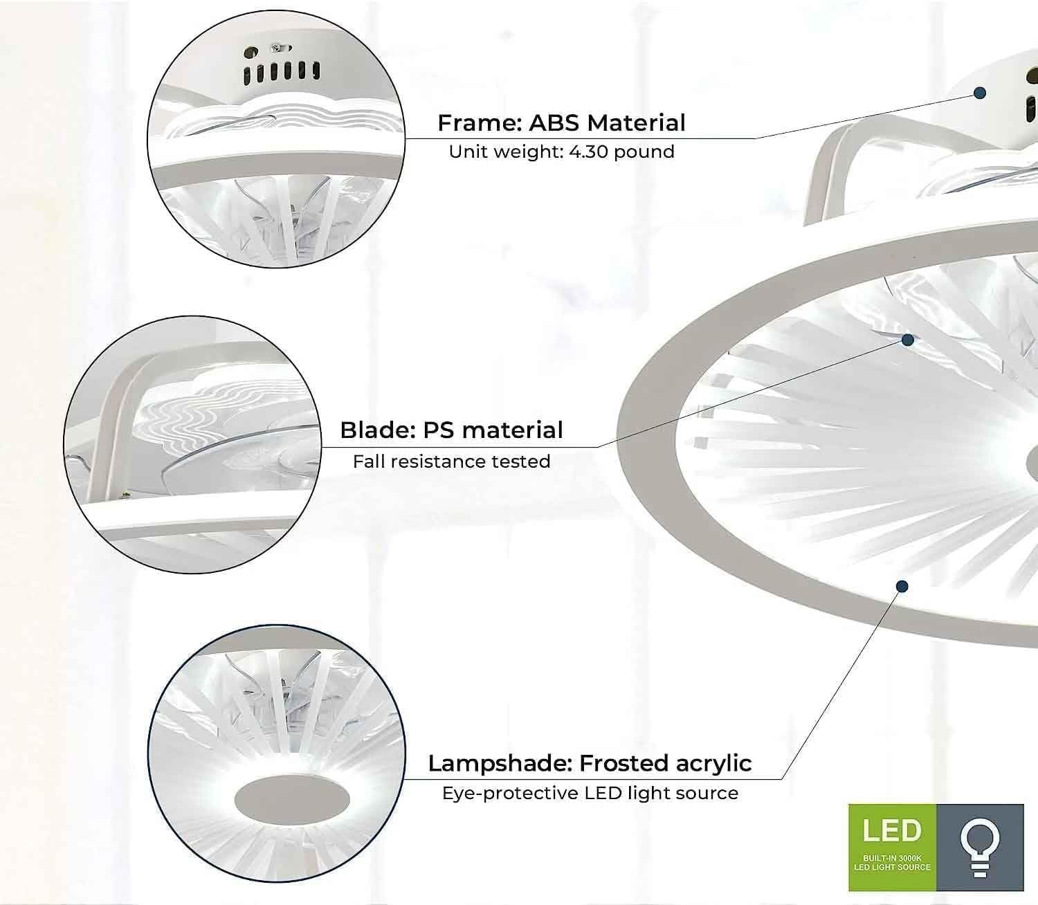 Each product is strictly tested to ensure superior quality.Our goal is to provide our customers with efficient, convenient and high-quality products.Thank you for visiting our store and wish you a happy shopping!Name:19" Low Profile Ceiling Fan w/Lights Modern Indoor Flush Mount Ceiling Fan w/Remote Control Led Dimmable Multi-Speed Invisible Blades Timing for BedroomPower: 40W(Maximum power)Voltage: 110VMaterial: iron + acrylicSize: 48CM(Diameter) * 18CMController: 2.4G remote controlFunction: Timer 1/2 hour, silent, 6-speed wind speedLight source: 3 modes - white light, natural light, warm light, dimmableApplicable environment: bedroom, living room, kitchen, study, children's room, dining room and other environments can be usedPacking:Fan light*1Parts*1Instruction manual*1Remote control (excluding batteries)*1All mounting hardware required is included in the package, you just no need to connect the wire, Installation is very convenient.