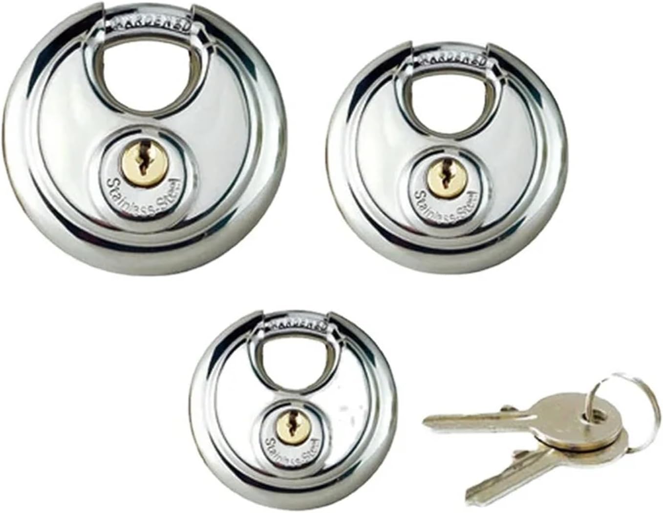 Locks & LatchesLatchMateriaal: Roestvrij StaalKleur: ZilverGrootte: 60mm 70mm 80mm 90mmZware constructie voor extra veiligheid.70mm Disc Hangslot Ronde Beugel Rvs Heavy Duty 1 ToetsenRoestvrij staal shell.Ronde taartLock magazijn deur slot met een sleutel .Roestvrij.Waterdicht.Past meest storefront poort houders.Pakket omvat:1 lock/2 keys