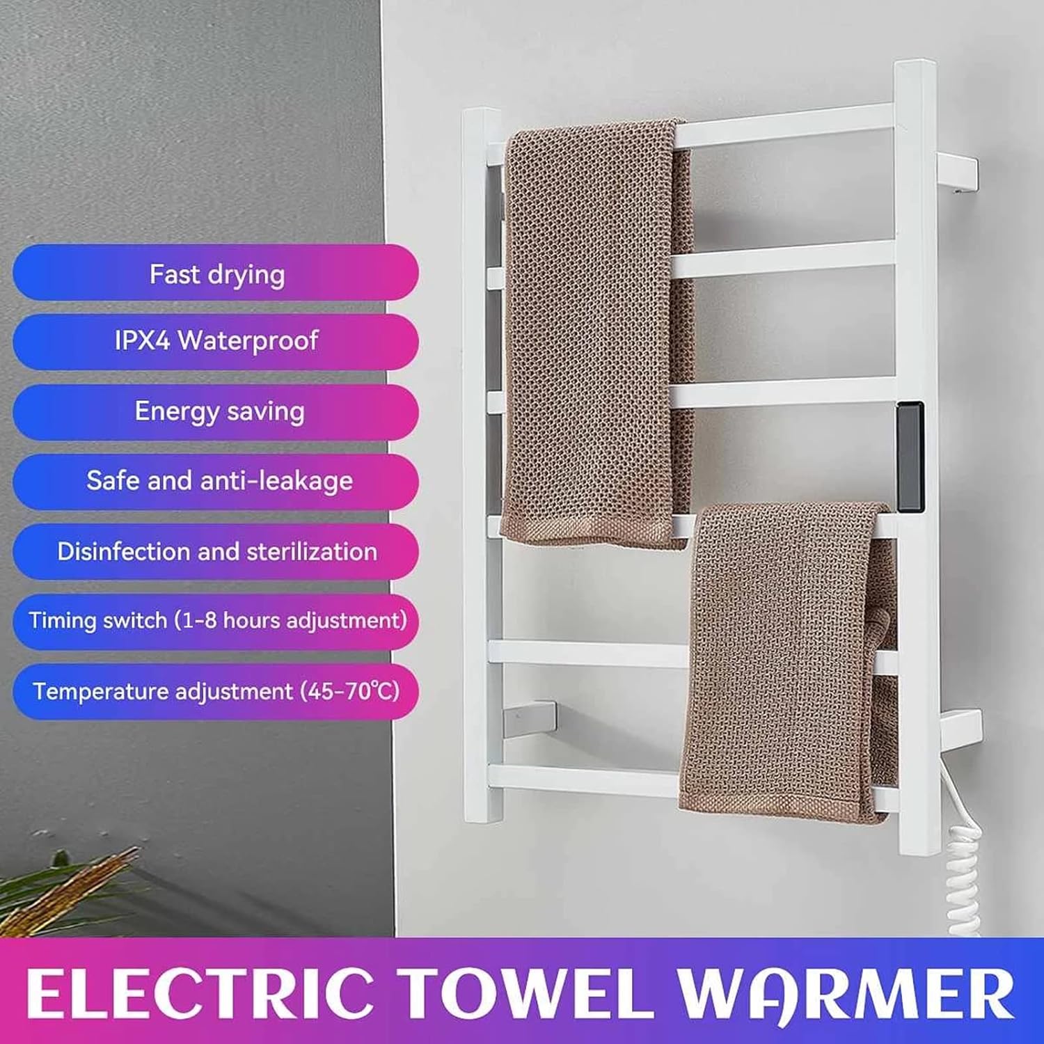 Name: Smart Bathroom Heated Towel Rail Style: Modern and simpleProduct material: 304 stainless steel Surface treatment: WhiteProduct size: 60x45x12mm Power: 80W Voltage: 220V/110VTime adjustment: 1-8 hoursTemperature adjustment: 45-70℃ Constant Temperature: 55 °± 5° Heating time: 5-10 minutes Waterproof Grade: IPX4 Mount Type: Wall MountedOutgoing direction: Right outgoing lineFunction: temperature adjustment, timingPackage Included:1 * Electric Towel Rack1 * Accessories Kit Note:Manual measurement of various sizes has a certain error. Please refer to the actual product!The project may be slightly different from the picture due to the display of lights and displays.