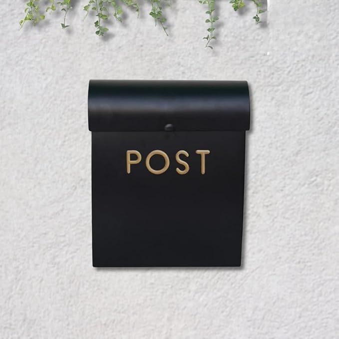 Add a touch of elegance and functionality to your home or office with the Wall Mounted Metal Mailbox in Antique Black. This 12.5 x 11 x 4.5-inch mailbox is a perfect blend of style and durability, designed for outside wall installation. Crafted from solid metal, it offers exceptional protection for your mail while enhancing your home's or office's curb appeal.This waterproof mailbox is built to withstand various weather conditions, ensuring that your mail stays safe and dry no matter the season. The antique black finish adds a sophisticated touch to any outdoor space, making it an ideal choice for home decor and office use. Its modern design pairs beautifully with various exterior aesthetics, whether you're decorating your front porch or outfitting an office building.With its wall hanging feature, this modern mailbox is easy to install and adds both charm and practicality. The spacious large size of this mailbox makes it perfect for holding letters, magazines, and even small packages, making it a versatile choice for homes and offices alike.