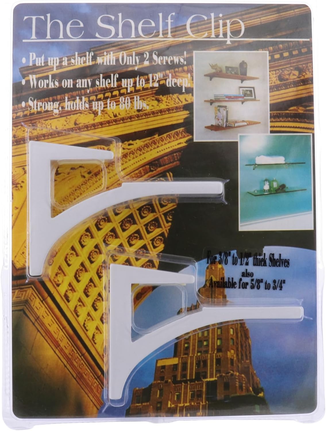 C.R. LAURENCE SC5W CRL White - Aluminum Shelf Clip for 3/8" to 1/2" Glass. These CRL Aluminum Shelf Brackets can be installed anywhere storage is needed. The black, chrome, and white powder coated colors will go with any d cor, and can be used in any environment including retail display, kitchen, bath, office, laundry room or garage. These Brackets will accommodate glass or wood shelves up to 1/2" (12 mm) thick. The design of the bracket provides support on the top edge and underneath, and will hold up to 80 lbs. (36 kg) per pair. Each pack contains two Brackets, mounting tape, spacer tabs, screws, and installation instructions.. Part Numbers Variations: SC5W