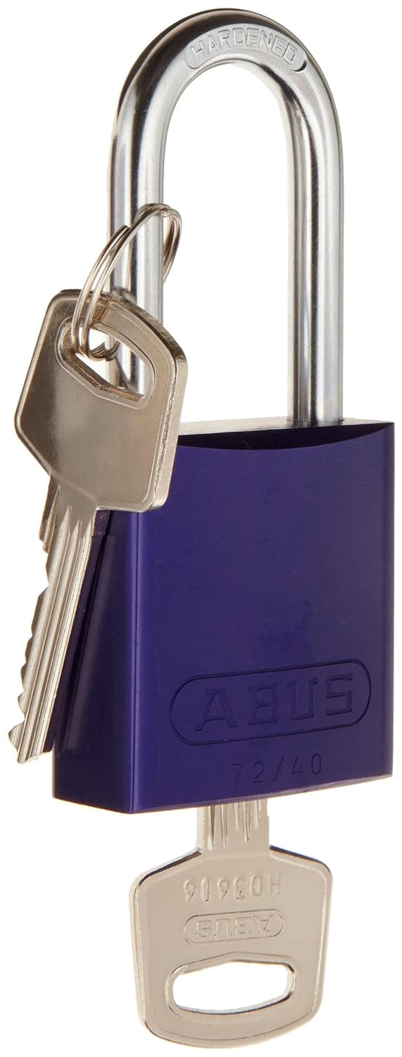 Brady 51371 aluminum padlock is manufactured with solid aluminum body and hardened chrome-plated steel shackles, our padlocks are amazingly lightweight and rugged. Padlocks may be purchased keyed different or keyed alike and are shipped with one key per lock. Lock labels sold separately. Padlocks are available keyed alike or keyed differently and are shipped with one key per lock. Brady can track or "chart" your keys in order to ensure that locks ordered at different times are all keyed different or keyed alike, as desired. Special features are compact, lightweight, most tamperproof, most rugged. Lock body measures 1-1/2" width by 1-3/5" height by 3/4" depth. Shackle diameter is 1/4", 1.5" shackle clearance. Key style is keyed different. Blue color.