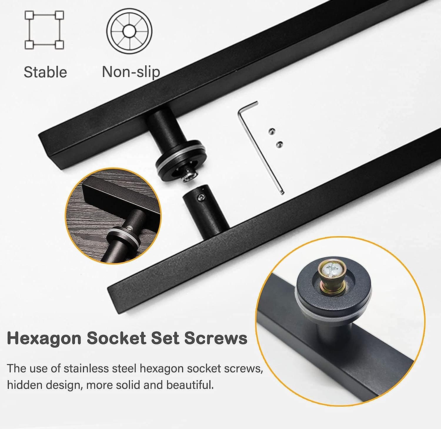 Modern design and elegant style that match most home decorations and multiple uses for many types of doors. Handles can be installed on interior and exterior doors,wooden doors,sliding doors,garage doors,swing doors and more.Features - Sturdy and durable. - Easy to push and pull. - Easy and quick installation. - Both functional and decorative. - For any scene and various doors. - Resistant to rust, corrosion, stains. Special treated bevel edges protect you and your families.It includes complete installation accessories and is easy to install.Precautions - Please pay attention to the size of the door and the dimensions of the handle before purchasing. - If you need the long threaded bolts for your thick door, please contact us. - This handle does not include a lock set, only the door handle is for sale. - Due to lighting problems, there may be a little color difference, which depends on the actual product. Good Service - We are committed to providing quality services to our customers. Please feel free to contact us if you have any problems with your order, we will solve it for you in time.