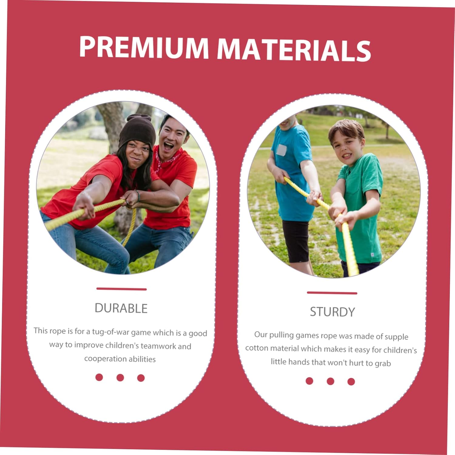 Package Include 1 x Rope 1 x Whistle 1 x Triangle Characteristics -Size:500.00X2.50X2.50cm/196.50X0.98X0.98in competition tug rope -Color:Assorted Color Packaging Jute Twine -Material:Cotton decorative cotton rope - The product is in a simple design, but very useful and for you to operate party tug-of-war rope. - Made of high-grade cotton material, and for use party accessory. - Professional and design with a beautiful appearance, easy to carry and use funny pulling rope. - This tug of war rope is very easy to use, giving you of conveniences while you are hold a match Packaging Accessory. - You will have a user experience because of the workmanship of this product party tug war rope.Goods InformationParty Rope Therefore, it is a pragmatic tool for your sports meeting.Handworked Craft Rope Pre- knots are prevented from dispersing: Both ends of -of-rope are bound with tape to prevent dispersing.Party Jute Twine Therefore, we recommend not unlocking the knots and tape to prevent the war rope from pulling out the war rope.tug of war rope Play a tug-of-war game, pull your , and win the medal
