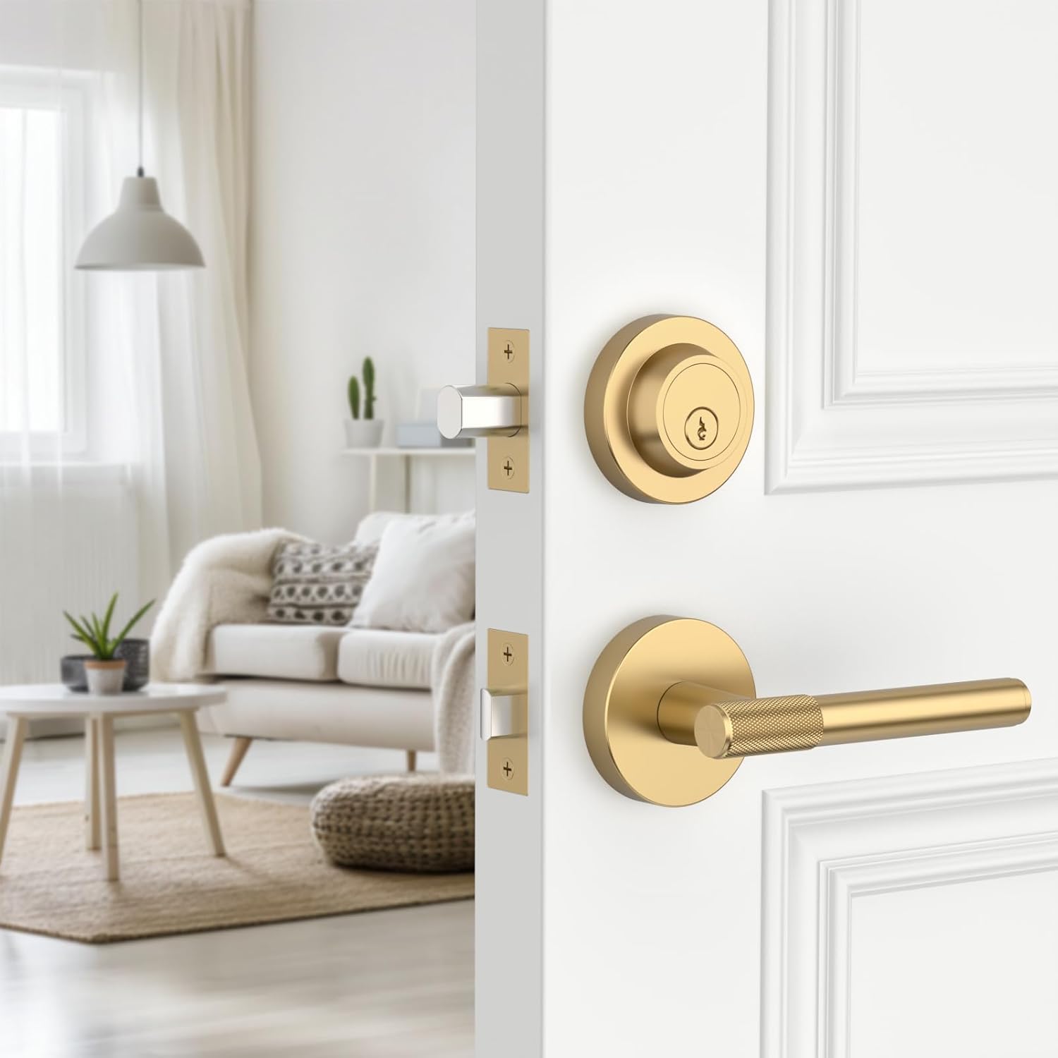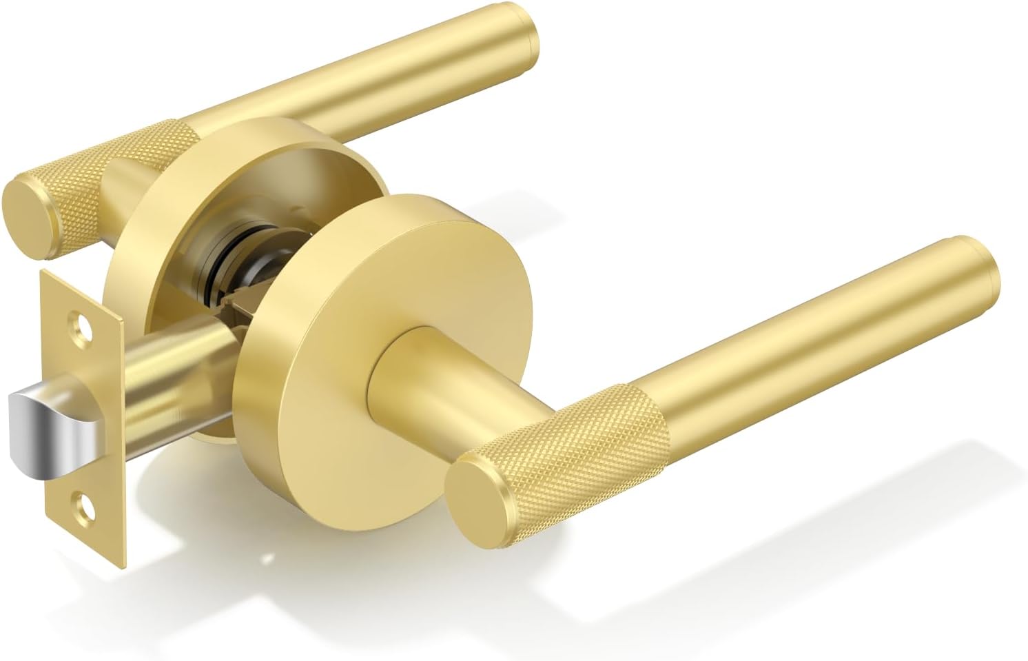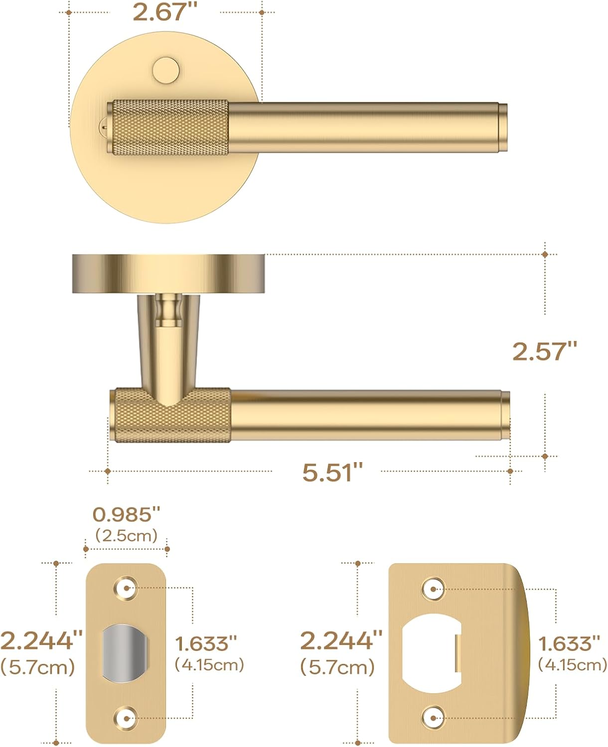Amerdeco 3 Pack Privacy Knurled Champagne Bronze Door Handles Interior with Lock,Heavy Duty Door Lever for Bedroom or Bathroom,Reversible Keyless for Left Right Handed Doors