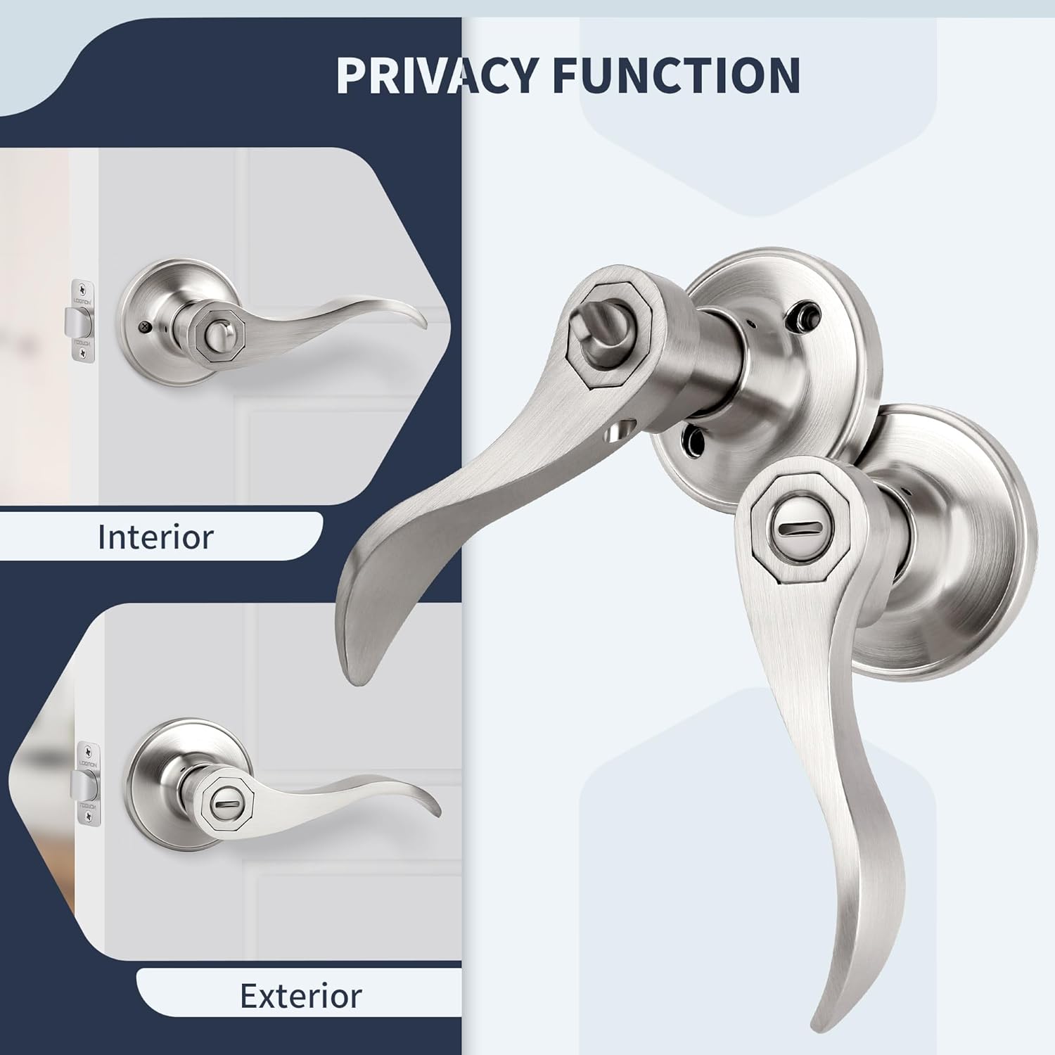 Wave Style Door Lever Privacy Door Handle, 5 Pack Wholesale Keyless Interior Lever Reversible for Left/Right Handed for Bedroom, Bathroom, Living Room with Satin Nickel Finish