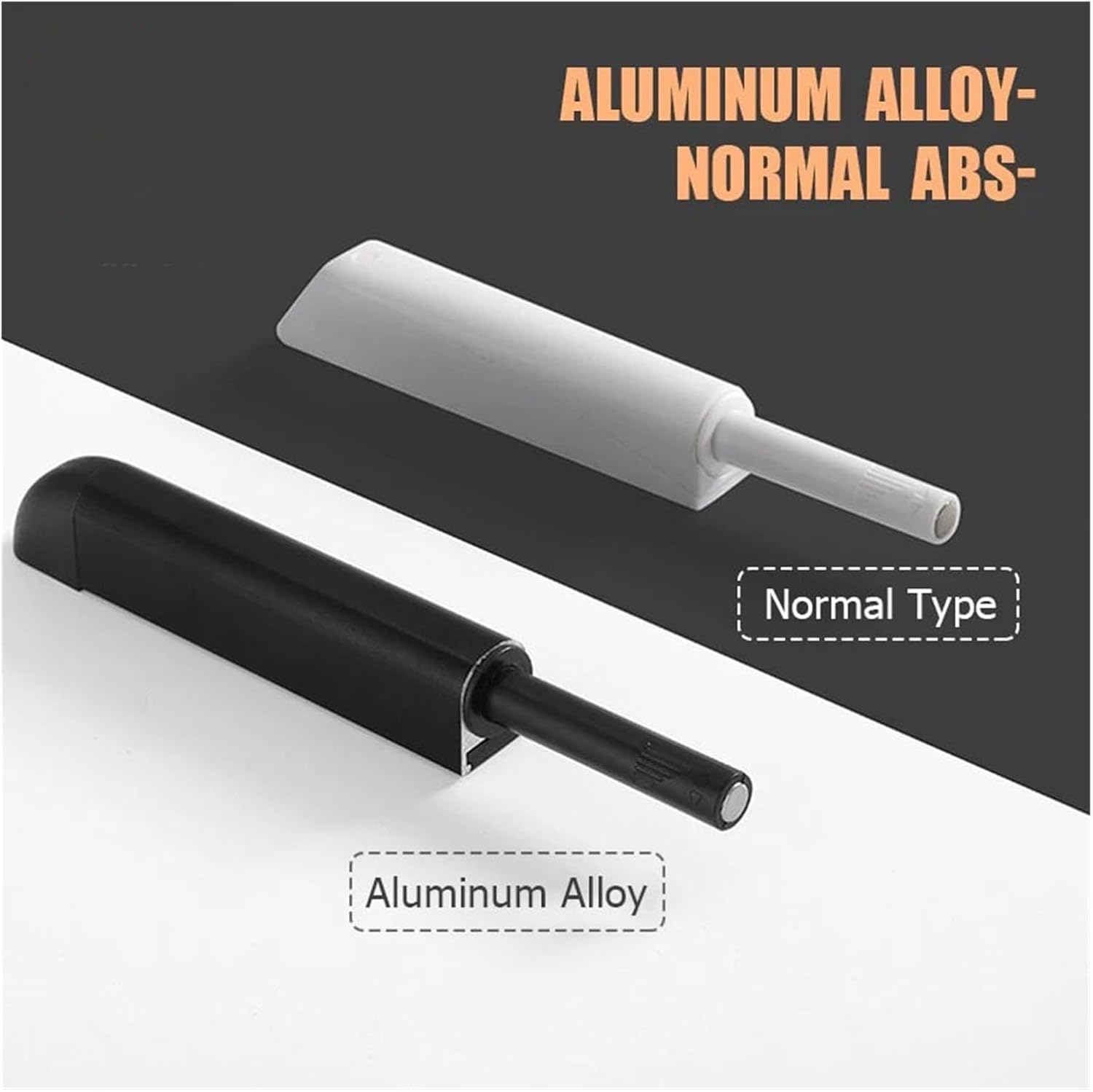 FeaturesCan be used as cabinet catches, also can replace traditional cabinet handles to be hidden handles. Invisible and convenient to use.Push to open, Push to close the cabinet doors.Strong head holds cabinet door tightly.ParametersColor: Gray/Silver/Black/Gray/Gold/WhiteMaterial: ABS plasticMaterial: Aluminum AlloyHead Distance is adjustable for 1-7mm so you can use it for all kinds of doors.Package includes: 1 xCabinet Catches with screwsModern hidden handles to replace tradtional visible cabinet handles.Adjustable head distance 1-7mm, rotate to suit for different door seams. cabinet catches handles for both big and small doors.Complete package with accessories, easy to install.Please notice different types are with different accessories from photo.Suitable for any side in the cabinetsYou can install it in the bottom, in the side, in the top, in any places that you can open the door conveniently.Made of thicken aluminum alloy or ABS material, durable and no worry to fall off for years.Perfect produce technology, smooth surface, nice look
