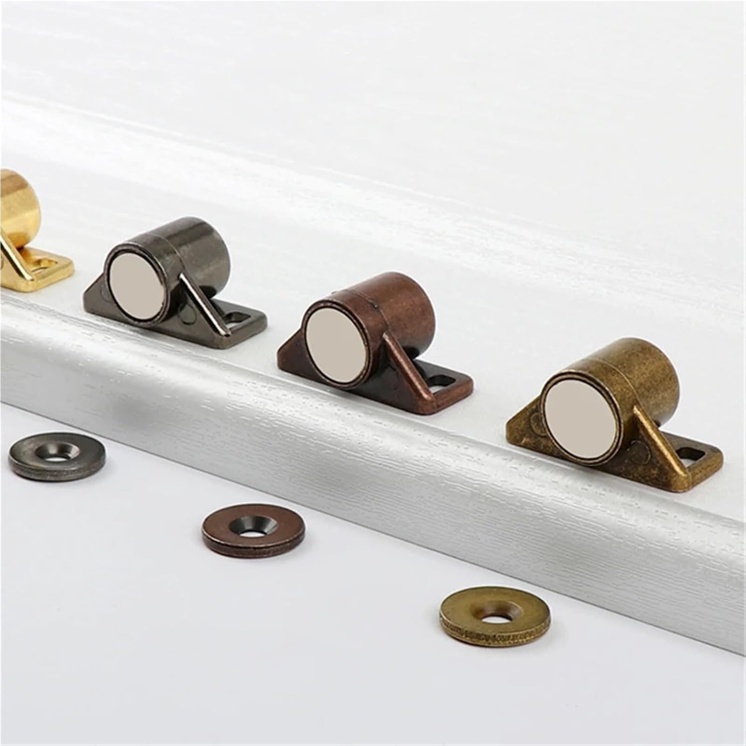 LatchStrong Magnetic Door Cabinet Suction Magnet Furniture Cabinet Door Catch Magnetic Wardrobe Door Clutch AccessoriesFeaturesStrong magnetic force ensures that your cabinet door and drawer wont be loose anymoreThis force is just right and wont make you feel hard to open your cabinet or drawer.Parameters Color whiteblacksilver/bronze/red bronze/gold Material: Copper, cold rolled steel, magnetPackage includes1 x Magnetic Cabinet Catch with screws