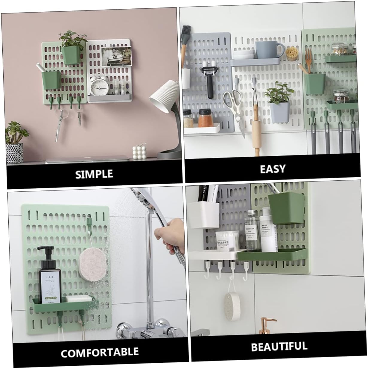 Package List 1 x board 1 x Rectangular box 1 x square box 5 x hanging hooks Characteristics - Color: shelves wall mounted. - Material: Plastic wall mounted storage shelf. - Size: About 42.00X30.00X1.00cm/16.51X11.79X0.39inch utility shelf. -Product Info:Hole board hook rack - Adhesive on the back, no need to punch, stick to the , put it at will, not afraid of falling kitchen shelves wall mounted. - Simple and neat Nordic style, easy to match, not obtrusive, making the home more comfortable and beautiful kitchen hanging rack. - Suitable for placing keys, alarm clocks, pencils, potted plants, etc. on the wall of the study room kitchen storage rack. - Suitable for placing daily necessities, hair ropes, glasses, etc. on the bedroom wall kitchen storage shelves. - Multiple holes can be arbitrarily matched with various plates, splicing out your corner kitchen pot storage rack.Goods Informationwall mounted storage shelf With unique design, the rack would provide you more space for hanging small items like keys, hats, purses, and more.wall mounted storage Made of nice plastic, this storage rack is and .kitchen hanging rack Not only can store and organize numerous items, but the creative modeling can also decorate your bathroom