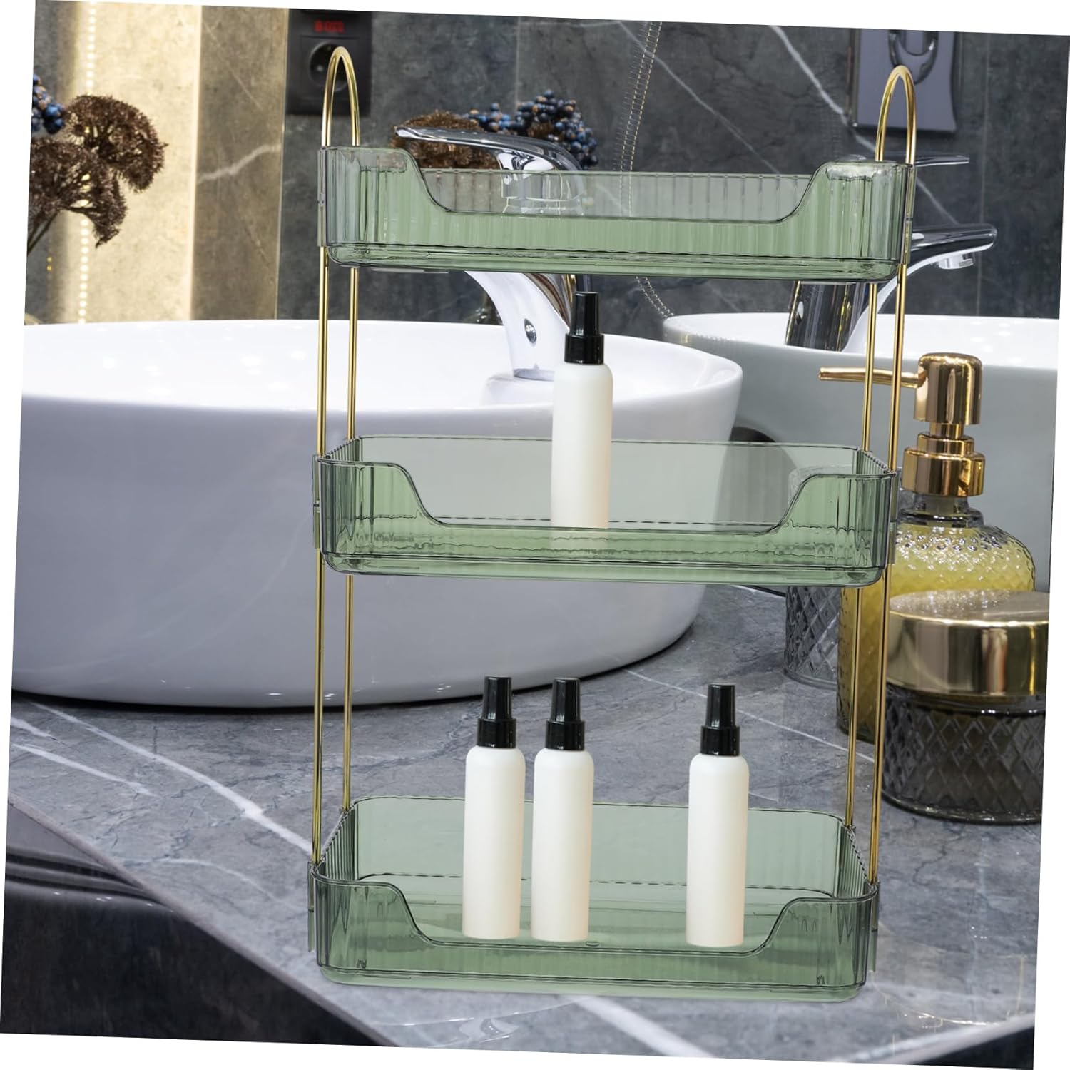 Package List 1 x Bathroom Countertop Organizer Characteristics -Material:Stainless steel, PET washroom desktop organizer - Stable material: made of materials, sturdy and , not easy to deform after long-term use countertop organizer. - Size: 48.00X30.00X17.00cm/18.86X11.79X6.68in shelving for bathroom vanity - Color: Green storage shelves - Multi-functional storage: can hold toiletries, cosmetics, skincare products, etc., making the bathroom tidier and more organized bathroom organizer. - Large capacity: can hold a variety of different sizes of items, meeting different needs countertop cosmetics holder. - Large space utilization: can be placed on the washbasin, bathroom countertop and other scenes, without taking up too much space multi-layer storage shelf. - Luxurious design: good material, simple and atmospheric, enhancing the bathroom grade bathroom shelves for makeup.Goods Informationstorage shelves The bathroom countertop organizer has strong load-bearing capacity and simple style, suitable variety of.makeup organizer for vanity Are you looking for bathroom countertop organizer? This product is perfect for you.bathroom shelf The usage is simple and convenient, the details are perfect, to use