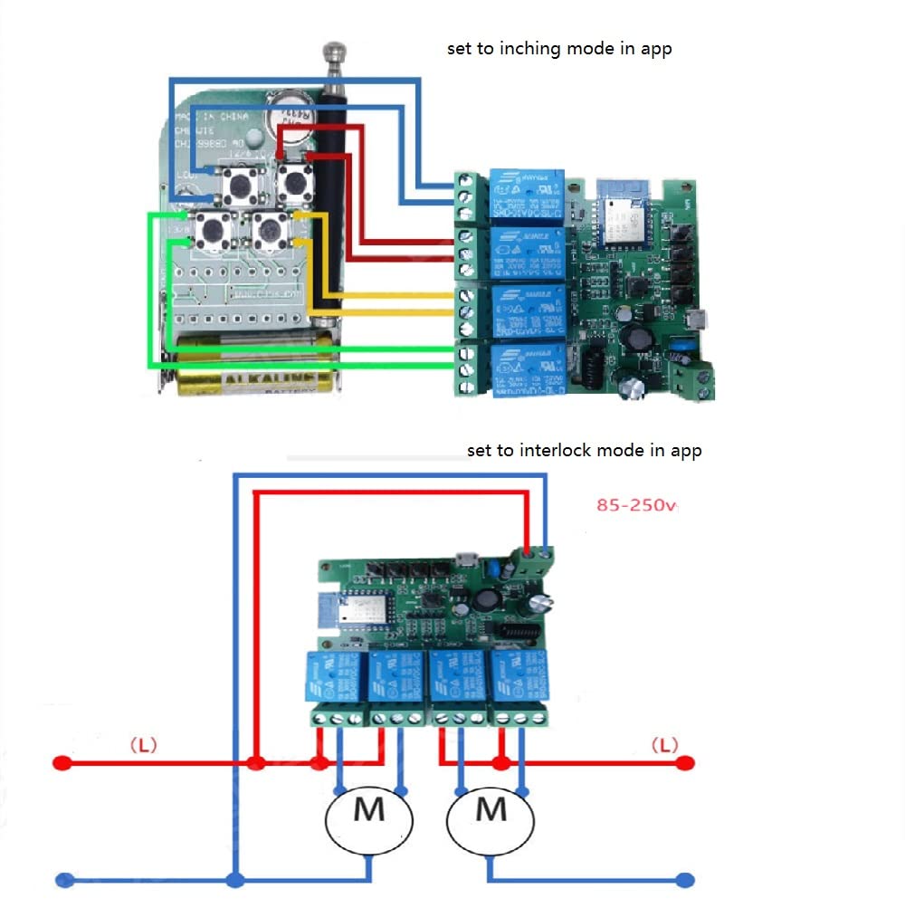 MHCOZY 4CH WIFI Smart Relay Module, DIY Smart Home By using the free Smart life/Tuya App remote control your home appliances or electrical devices anytime and anywhere. support 2.4G wifi only,when pairing,your phone have to connect with the same 2.4G wifi . WIFI control, no need to program. No matter where you are, you only need to download a APP to connect the wifi and control the cloud.Features: input voltages : USB 5V or AC85-250V With signal instruction light and relay pull-on instruction light Power <1W, and quiescent current:80mA Cutover current<10A , Cutover voltage<250V 10A Relay Model Working Temperature: -40 to 70 degree Working Humidity: 40% to 80% RH Function: 1.Default Self-locking latching mode: Turn on/off 4 connected devices separately.2.Momentary inching mode,Press the open relay by mobile phone, then cut off the pull-on immediately(default one second). Interlock mode: Turn on one device every time, and turn off others at the same time.t has the timing-share function at the same time. 2. . Feature:Independently control 4 devices: It is the new 4-channel design which can make you remotely turn on/off 4 home appliances independently create single/repeat/circle/ countdown timers to automatically turn on/off devices at the specified time. And the timers can run themselves even the network is unavailableSync Status:Real-time devices status provided to App Voice control Wifi smart switch can work perfectly with Alexa-enabled devices like Echo/Tap/Dot, as well as Google home. Control home appliances or electrical devices with your voice like this:“Alexa, turn on the light.” “Alexa, turn on Garage door.” “Hey Google, turn off the bedroom light.” “ Package included: 1 x 4CH WIFI Relay, 1 x instruction