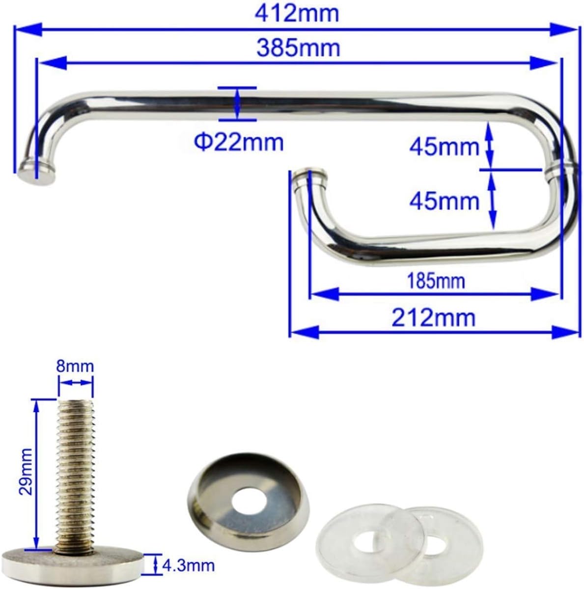 the Door Handle is Manufactured from High Grade, It is Modern and Attractive But More Importantly Provides Safe and Reliable Support to Users in Need of Help Manoeuvaround the Bathroom or Any Other Space in the Home.This Grab Rail Easy to Clean and Will Not Rust or Corrode. Easy to Install and Allow for a Maximum User Weight of 150Kg.This Shower Door Handle Can Also Be Used As a Towel Rail If Desired.Used in Any Place Such As Bathroom, Kitchen, Shower, Toilets, Patio, Hotels and So On.