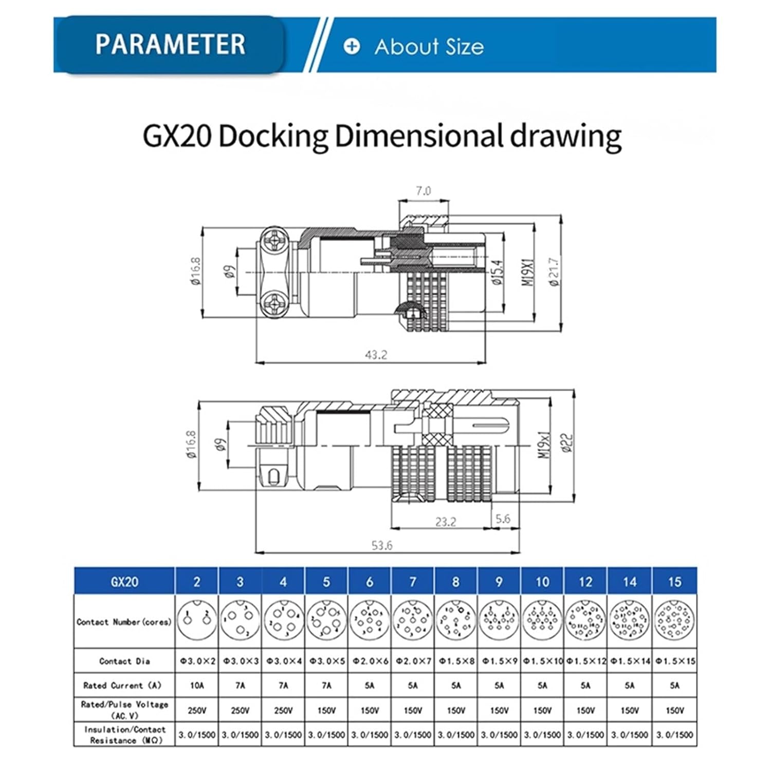 Electrical Connectors1 Set GX20 Butt Type Welding Wire Connectors Male Female Socket 2-15 Pin Quick Cable Docking Connector==========Model Number : GX20 Docking TypeVoltage : 220 VWiring : WeldingPin : 2/3/4/5/6/7/8/9/10/12/14/15 PinFeatures 1 : Electrical ConnectorFeatures 2 : Power ConnectorFeatures 3 : Waterproof junction boxFeatures 4 : Household/Industrial EquipmentFeatures 5 : Led Light