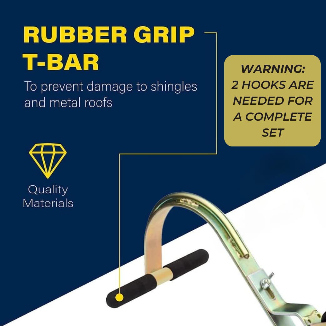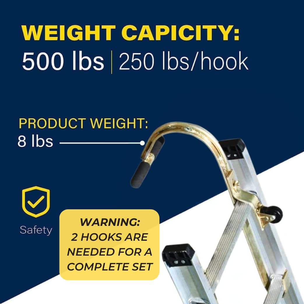 Tie Down's Ladder Hook with Wheel offers a secure and efficient solution for safe rooftop access, catering to various applications like roofing, maintenance, and construction projects. Designed with stationary wheels that provide controlled movement and precise ladder placement, this tool ensures optimal stability when transitioning over a roof's peak. Attaching the Ladder Hook is a straightforward process: secure it to the ladder's two top rungs or the ladder extension and simply roll or slide the ladder, allowing the ladder hooks to pass over the roof's peak. For maximum stability and support, it's recommended to use two Ladder Hooks per ladder. This setup ensures a sturdy connection between the ladder and the roof. It features zinc plated steel construction, guaranteeing extended durability and a longer service life. With an impressive weight capacity of 500 lbs. (250 lbs. per ladder hook), this tool supports the safe use of heavy tools and equipment during rooftop tasks, providing peace of mind for users dealing with varying loads. The Ladder Hook incorporates a T-bar with a rubber grip to protect the roof surface and maintain a secure grip during use, preventing damage while ensuring a safe working environment. Note: this is 1 single for replacement/add-on item, you would need to purchase 2 for complete setup.