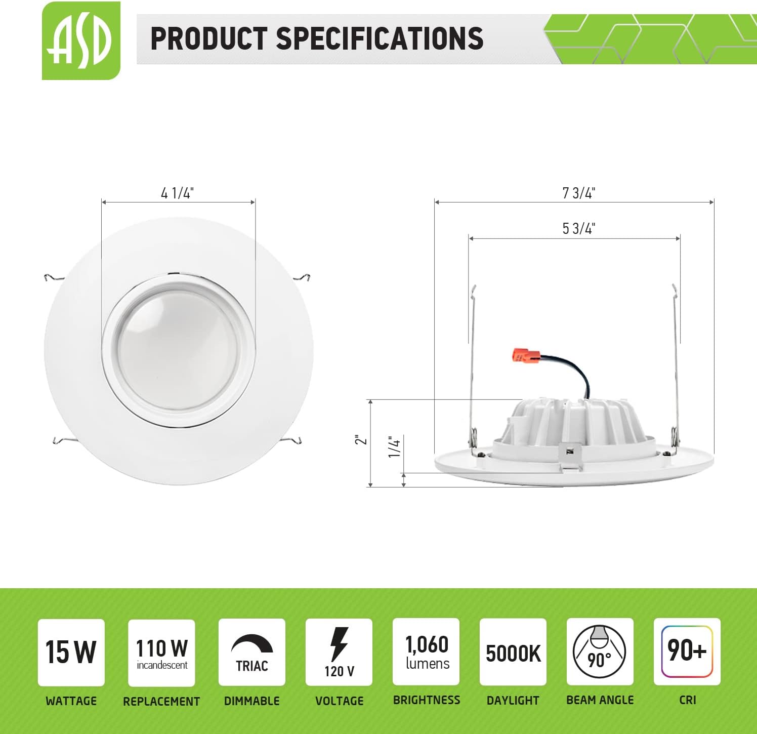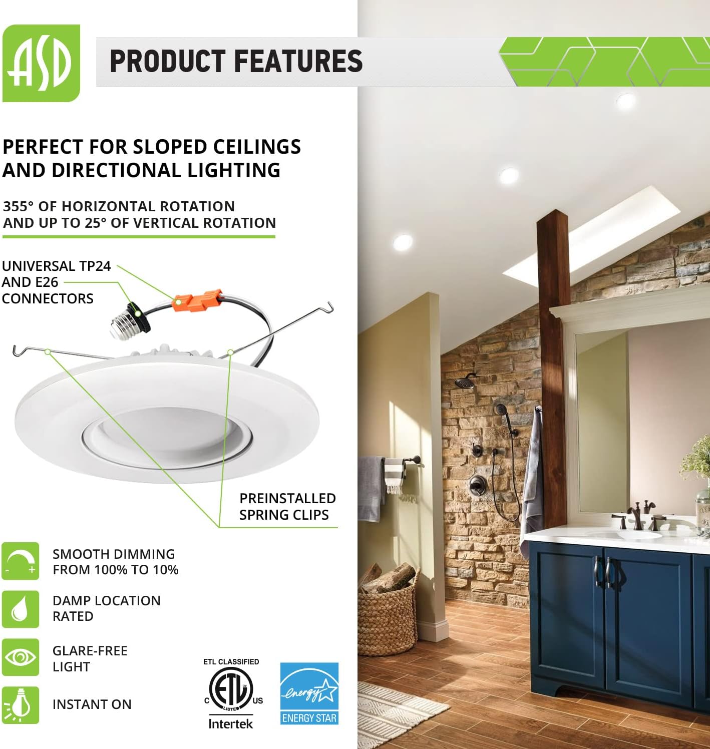 | Other Special Features of the Product | Dimmable, Instant On, sloped ceiling, wet location |