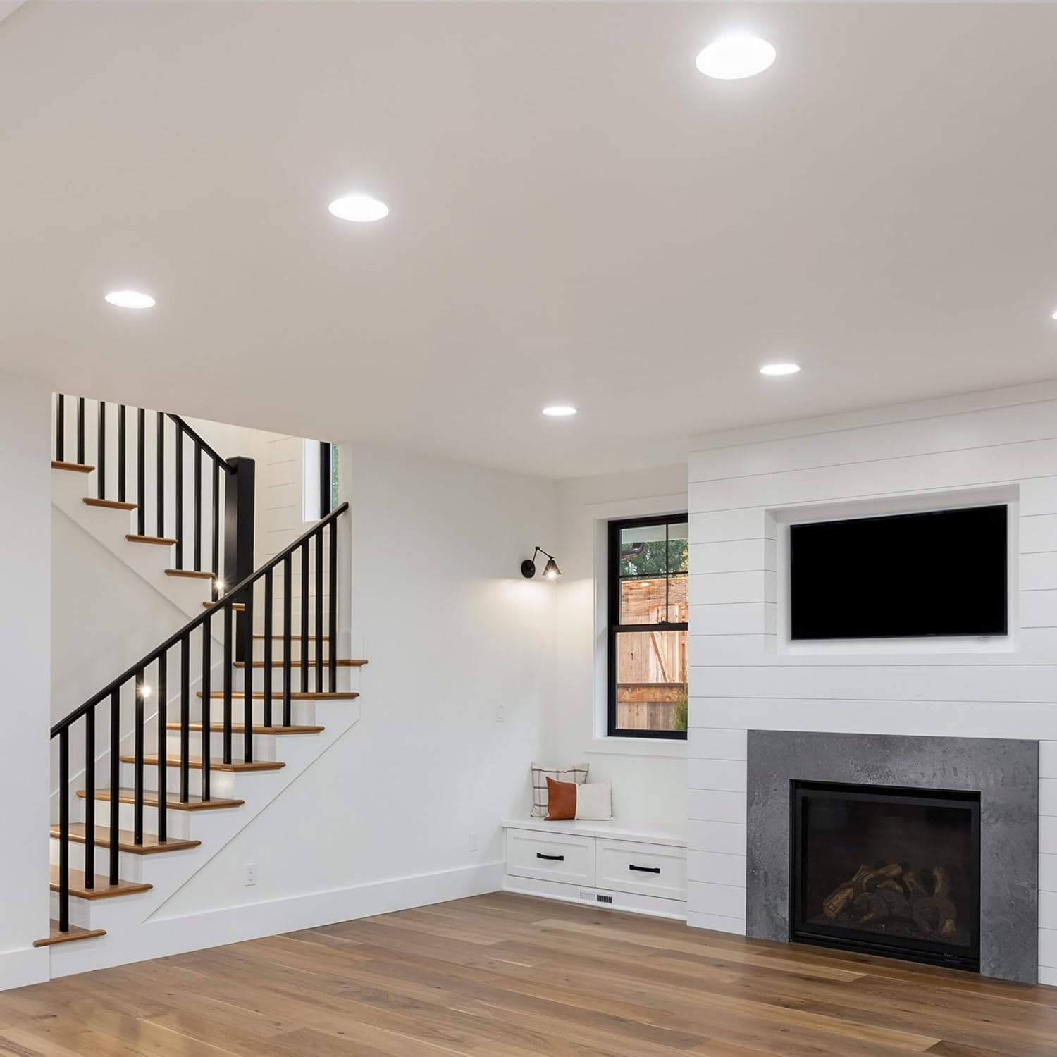 RGB+WW multicolor plus white 120V smart recessed LED downlights from Armacost Lighting. Available in canless model for new 6″ LED downlight installation or retrofit trim model for existing 6″ cans. The smart multicolor LEDs can be controlled by a regular wall switch or paired with the Tuyo app for on/off, 0-100% dimming, color, and special effect control. Install the retrofit model to an existing 6 in recessed light housing (regular A24 light bulb base) or install the canless model directly into ceilings on new projects, no housing needed. Both models are slim and low profile for a clean aesthetic.