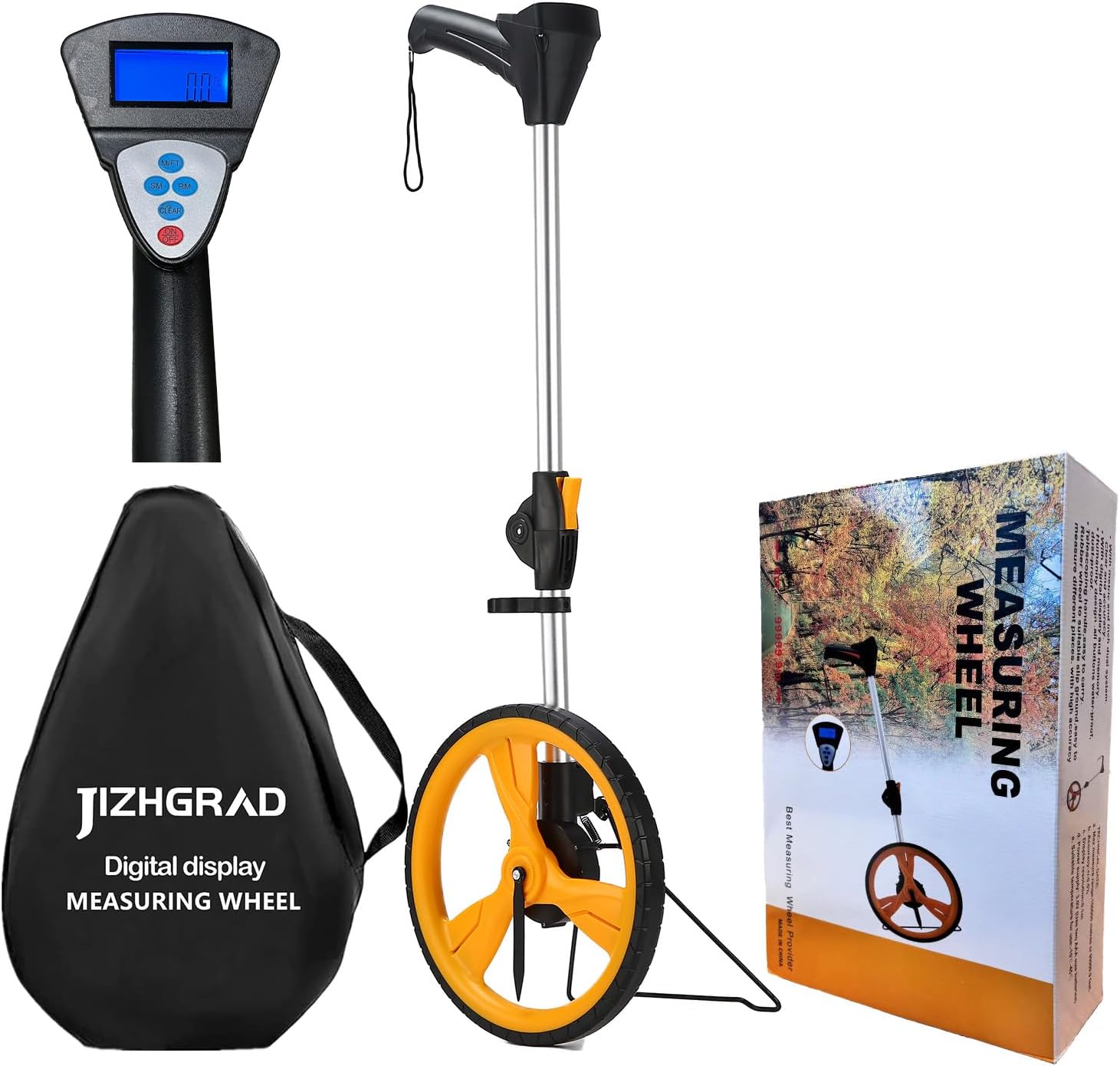 Enhance your measuring experience with the JIZHGRAD Distance Measuring Wheel in Feet – a versatile and reliable tool designed for precision and convenience. This 12.5” diameter measure wheel comes equipped with 10 marking flags and a dedicated flag holder, allowing you to efficiently mark critical points during your measurements. The collapsible design and foldable handle make it easy to store and carry, while the one-click reset button simplifies operation. With a high level of accuracy (±0.3%) and the ability to measure up to 9999.9 feet, this measuring wheel delivers reliable results for both small and large projects. The included canvas carrying bag adds an extra layer of protection and portability. Trust JIZHGRAD for accurate, durable, and user-friendly measuring tools that meet the demands of professionals and DIY enthusiasts alike.