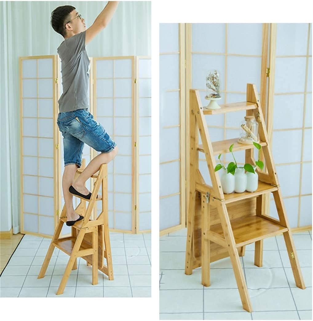 4 Step Stool Indoor Folding Step Ladder Kitchen Wooden Ladders Folding Step Stool Portable Shoe Bench/Flower Rack Feature: The multifunctional ladder chair adopts a foldable design, which is convenient for storage and does not take up space The step stool is very smooth and has an easy-to-clean coating, just wipe it gently with a soft cloth Specification: Product name: Convertible stair stool Size: As shown Notice: 【1】This product only contains a step stool, the other items in the picture are just decoration and not included 【2】Due to different monitors or shooting angles, there may be chromatic aberration in the actual product 【3】Product size is purely manual measurement, there may be slight errors, please understand Package includes: 1 * Folding Step Ladder Chair