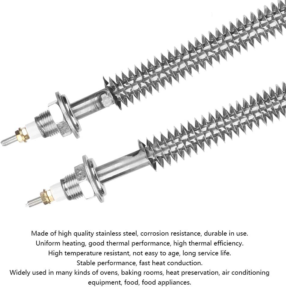 Features : Made of stainless steel , , in use . Uniform heating , good thermal performance , high thermal efficiency . High temperature resistant , not easy to age , long service life . Stable performance , fast heat conduction . Widely used in many kinds of ovens , baking rooms , heat preservation , air conditioning equipment , food , food appliances . Specification : Material : Stainless steel Voltage : 220V Power : 1 . 5KW Length : 40mm/15 . 7in Package List : 1 x U Type Finned Heat Tube