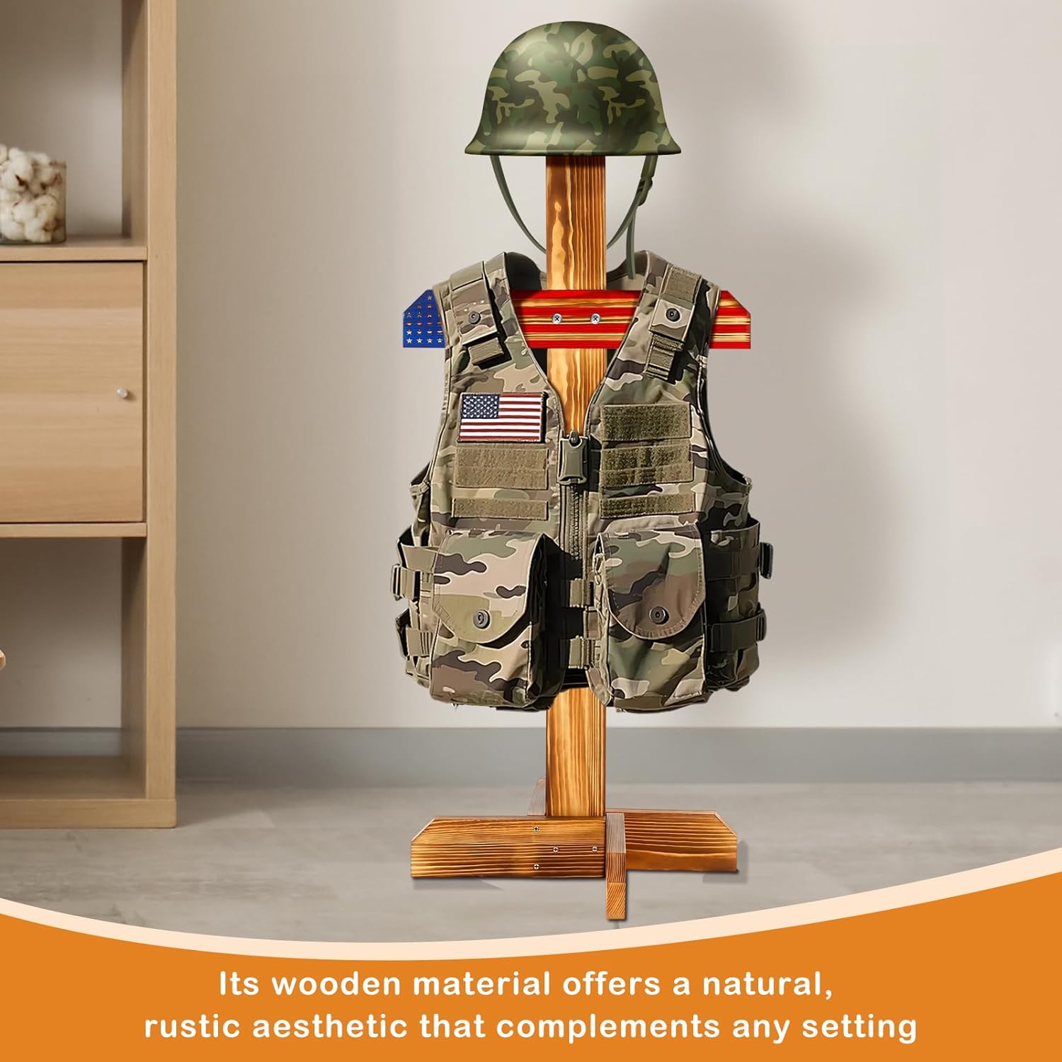 Features: All inclusive package: The package includes one complete tactical armor stand, which makes getting started straightforward and hassle free. This all in one solution ensures you have everything you need right out of the box, with no extra purchases necessary, supporting a smooth and easy setup experience. Thoughtful design and functionality: Our armor stand not only keeps your gear neatly stored but also adds an element of practicality and efficiency to your routine. Its sturdy, wood construction paired with its ability to organize various gear types makes it a useful addition to any home or facility looking to keep their area tidy and prepared. Specifications: Material: wood Color: wood Size: approximately 43.31 x 17.72 inches/ 110 x 45 cm Package includes: 1 x Tactical armor stand Notes: Manual measurement, please allow slight errors on size. The color may exist a slight difference due to different screen displays