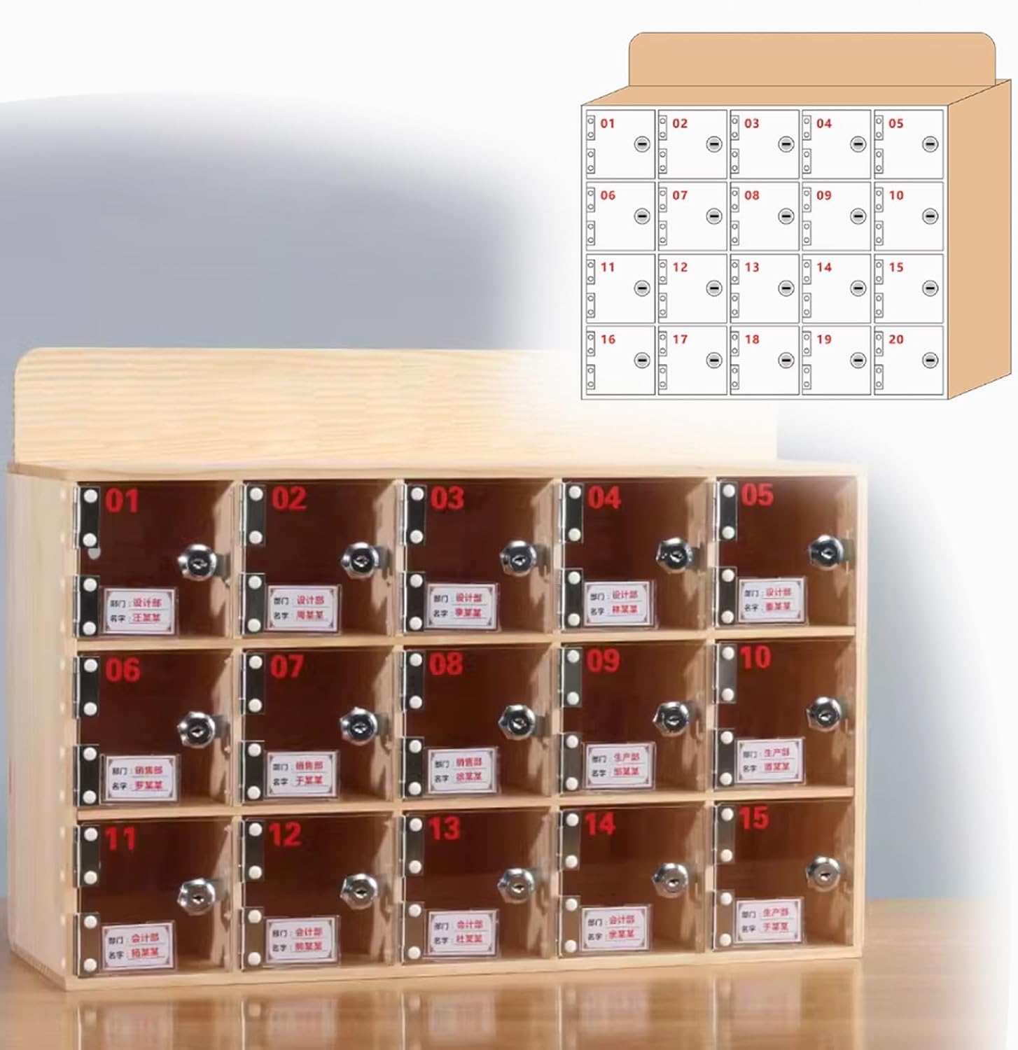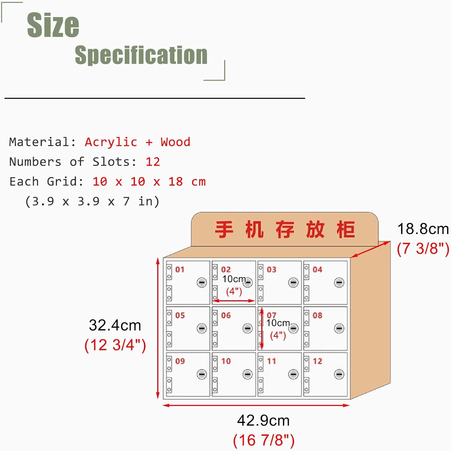 Are distractions affecting your productivity at work? Concerned about the safety of your phone while at the gym? Our Cell Phone Locker is the perfect solution for you! **Product Specifications:** - **Material:** Wood + Acrylic - **Lock Material:** Stainless Steel - **Shape:** Rectangular - **Mounting Type:** Freestanding - **Installation:** No assembly required **Key Features:** - **Versatile Compatibility:** Designed to accommodate a variety of cell phone models, ensuring your device fits snugly and securely. - **Secure Locking System:** Each key corresponds to its designated lock, providing peace of mind that your belongings are safe. - **Durable Construction:** Crafted from thickened materials, this locker is built to withstand daily use and maintain its quality over time. - **Easy Maintenance:** The smooth surfaces make cleaning a breeze, allowing you to keep your locker looking pristine. - **User-Friendly Design:** With no assembly required, you can set it up and start using it right away. **Package Includes:** - 1 x Cell Phone Storage Cabinet - Independent Keys and Locks for each compartment **Important Notes:** - Slight measurement variations may occur due to manual measurement; actual dimensions may differ slightly from the product received. - Color differences may arise due to individual monitor settings, resulting in minor discrepancies between the actual product and photos. **Customer Support:** We are committed to providing quality service. If you have any questions or need assistance, please reach out to our 24-hour customer service team. Elevate your organization and security with our Cell Phone Locker, perfect for any workspace or fitness environment. Keep your devices safe and focus on what truly matters!