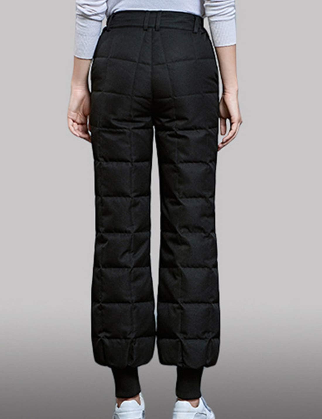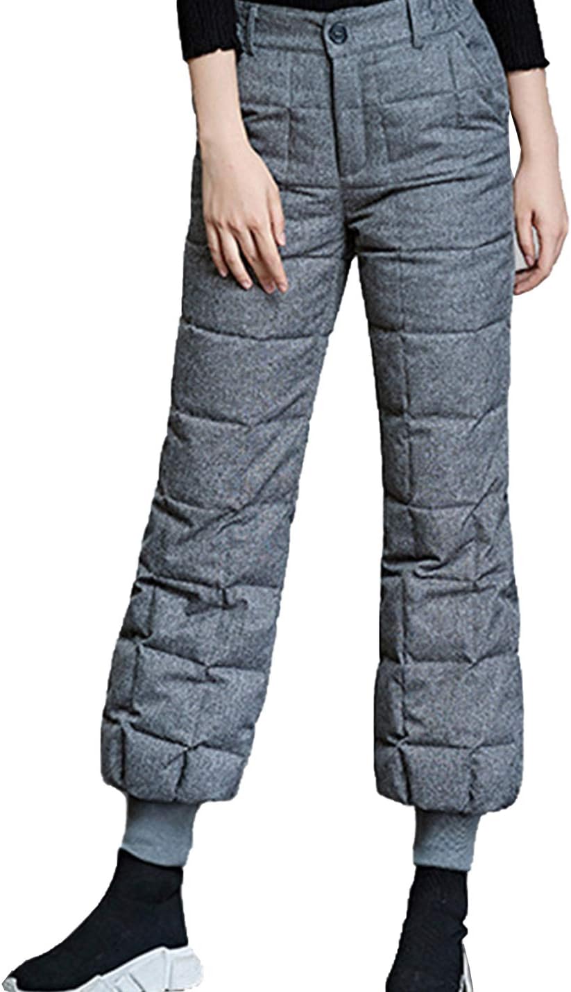 Flygo Womens Winter Warm Utility Down Pants High Waisted Snow Trousers Bloomers Fabric: 80% Ployester, Filling:100% Quality Down Gender: Women Stitching: Diamond Season: Winter/ Fall Occasion: Daily/ Outdoor Fit: Loose Waist: Elastic Waist Feature: Down Lining/ Diamond Stitching/ Winter Warm Ski Pants/ Bloomers/ High Waist/ SIZE CHART: XS--Waist26.77"-33.07"/68cm-84cm--Hip37.80"/96cm--Length38.98"/99cm S--Waist28.35"-34.65"/72cm-88cm--Hip39.37"/100cm--Length39.37"/100cm M--Waist29.92"-36.22"/76cm-92cm--Hip41.34"/105cm--Length39.76"/101cm L--Waist31.50"-37.80"/80cm-96cm--Hip43.31"/110cm--Length40.16"/102cm