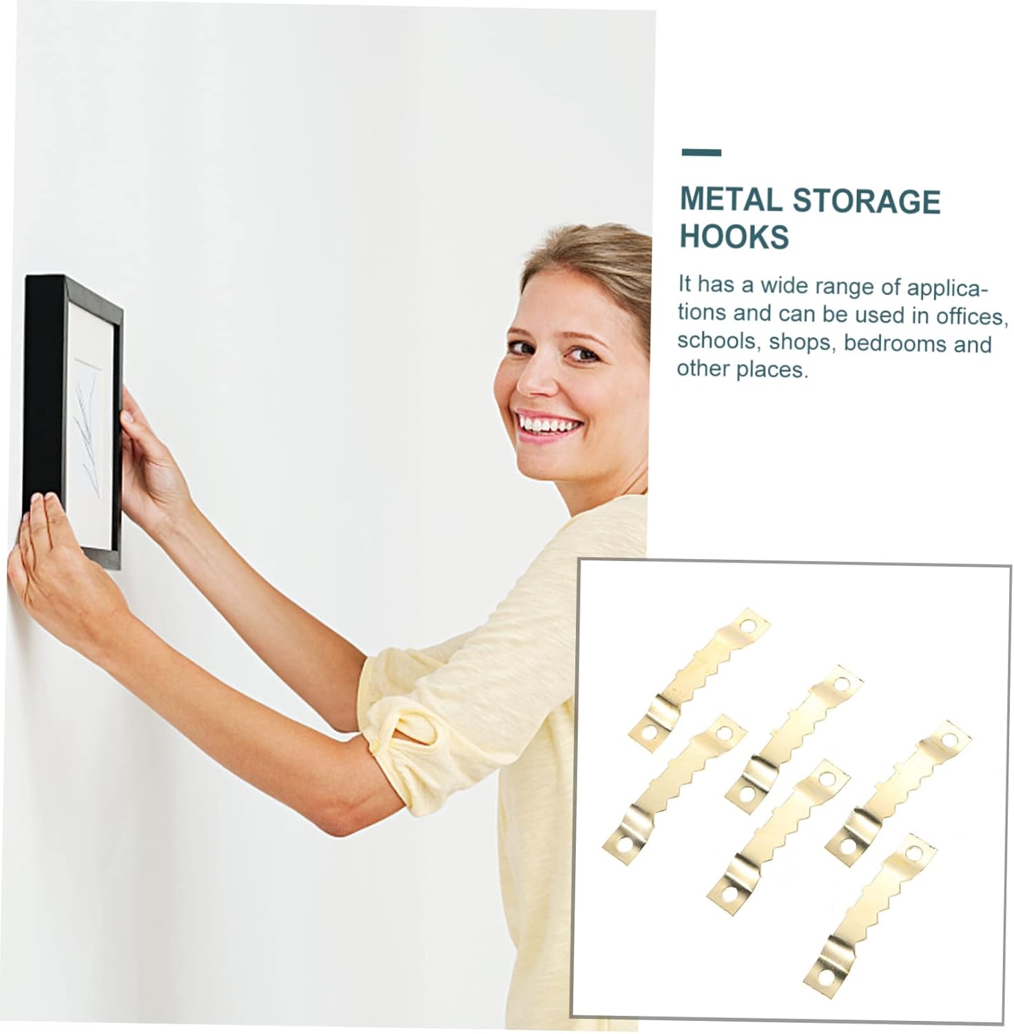 Package Include 1000 x hooks Characteristics - Color: Golden Art Gallery Hooks. - Size: About 4.50X1.00X0.30cm/1.77X0.39X0.12inch Hanging Photo Hook. - Material: Iron Picture Hanger. - The creative and hook is designed to help easily decorate artwork frames and other artwork on the wall Picture Frame Hooks. - Choose strong and iron materials, and , and can serve you well Serrated Photo Frame Hook. - It has a wide range of and can be used in offices, schools, shops, bedrooms and other places Photo Serrated Hook. - The hook set is simple to use, easy to use and easy to carry Photo Frame Hanging Hooks. - The hook of the photo frame made of carefully made will not deform or fall off, and can be for a long time Wall Hanging Mounted Hook.Goods InformationHanging Photo Hook The hooks can be used in any environment, very . Picture Hook This is a set of hooks, which are made of iron material, for use.Photo Serrated Hook Hooks are more and have greater bearing capacity than self-adhesive ones