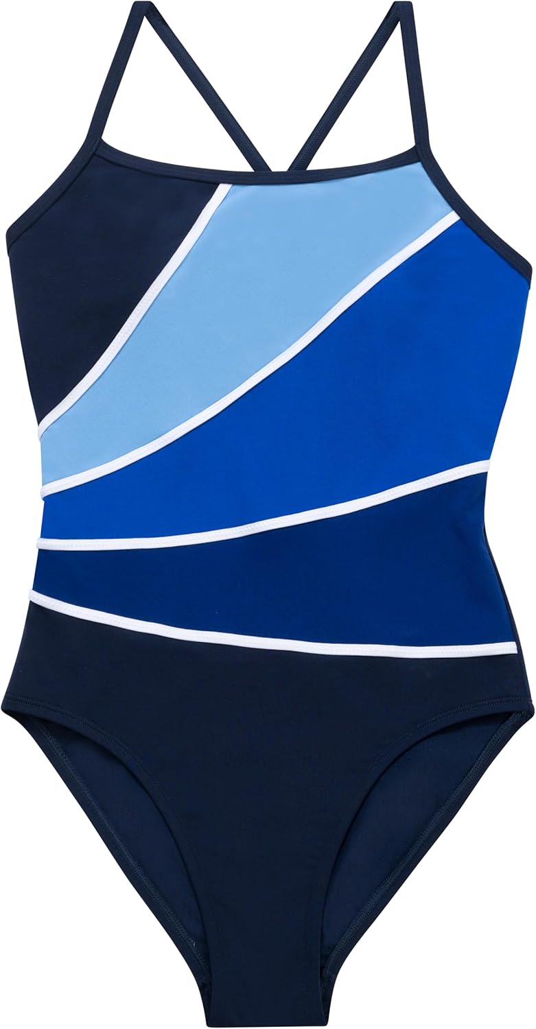 Feel strong, supported, and completely in your element with the Aquashape Women’s Navy and Light Blue Colorblock Moderate One Piece Swimsuit. Designed for women who embrace movement and confidence in the water, this suit features tranquil shades of blue with a front contrast binding detail that helps define and flatter the silhouette. It’s an ideal choice for lap swimming, water aerobics, and aquatic fitness routines. Thoughtfully crafted from premium, chlorine-resistant fabric, this one-piece delivers lasting shape retention, stretch recovery, and dependable performance through regular wear. The criss-cross back straps allow freedom of movement while maintaining a secure, supportive fit. With sewn-in bust cups for added support and UPF 50+ sun protection, this suit keeps you comfortable, covered, and confident through every aquatic workout.