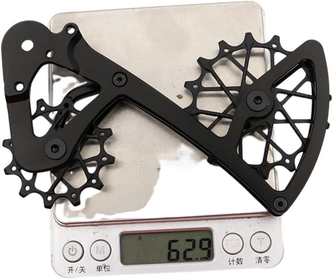 1、By using our 11/12 speed rear derailleur RD guide plate, you can extract more performance from a standard 11 speed rear gearbox thanks to more efficient rear derailleur guide plate positioning. The range of the 11 speed transmission system is up to 500%, and the range of the 12 speed transmission system is up to 520% 2、Combined with this oversized derailleur pulley, you can achieve a wider range of transmission systems, smooth gear shifts, and more precise bicycle transmission operation 3、This rear derailleur kit is suitable for SRAM 11/12 speed, Type2, 2.1, 3 MTB rear derailleurs, from NX、GX、X01、XX1、NX Eagle、GX Eagle、X1 Eagle、X01-Eagle、XX1-Eagle、XX1-AXS、X01-AXS、GX-AXS 4、Size: Approximately 150x80x12mm (as shown in the figure) 5、Weight: Approximately 42 grams
