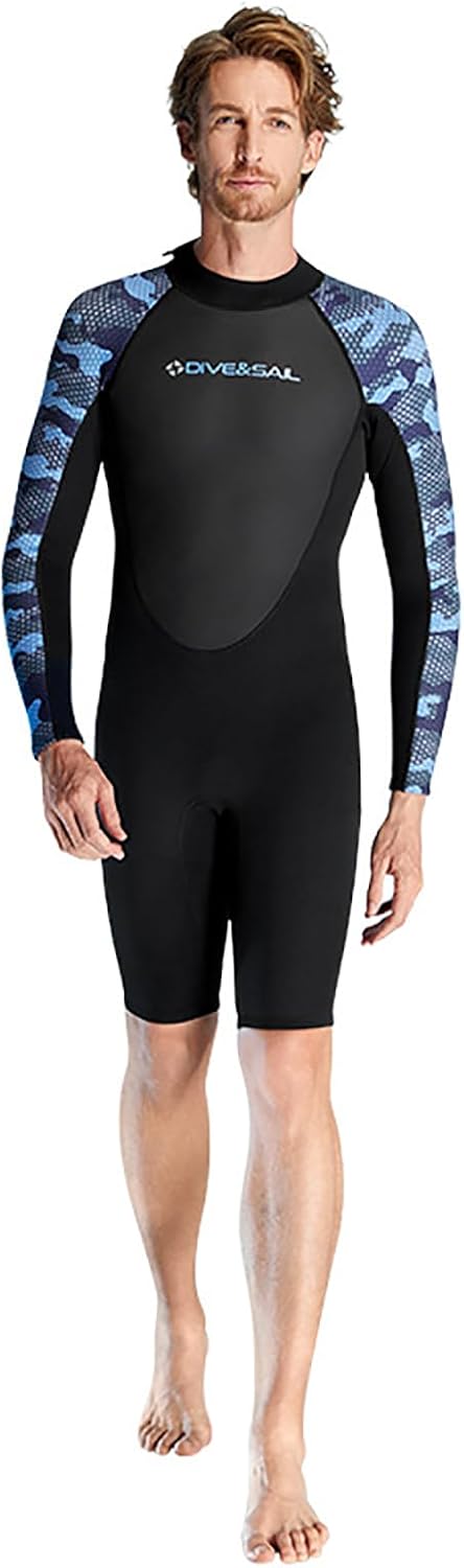 Men Women Shorty Wetsuit,2MM Neoprene Long Sleeve One Piece Front Zip Diving Suits Rash Guard for Diving Snorkeling Surfing Swimming
